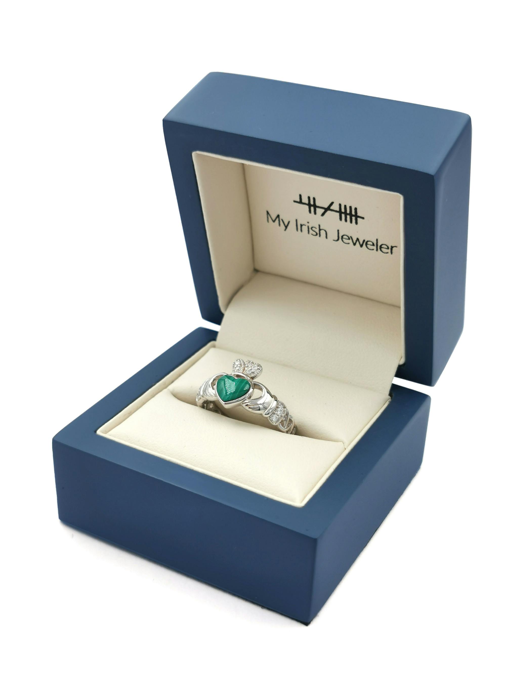 I had the opportunity of purchasing the most beautiful Claddagh ring with malachite stone for my girl. The ring was made to Perfection. Their customer service with me was beyond excellent, I’m a loyal Peter the Jeweler Customer and I will purchase all my Irish jewerly from them. Thank you all!!!