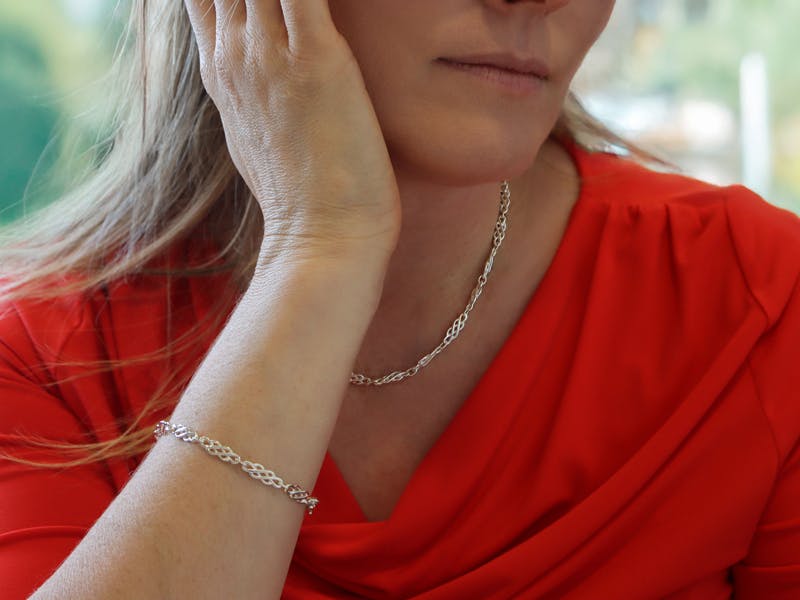 A classic chain is a jewellery-box staple, the little black dress of jewellery, and it is stylish chains with a little bit extra that are everywhere this autumn. Think chunkier styles, and ones that have texture or interest, that can stand on their own or look great in stacked or layered looks. Our new Celtic Knot Chain, is an elegant design, prefect for layering but substantial enough to stand on its own in any ensemble. Day or night, this chain will add a refined polish to any look and is weighty enough to make a statement when worn with heavier fabrics at this time of year.