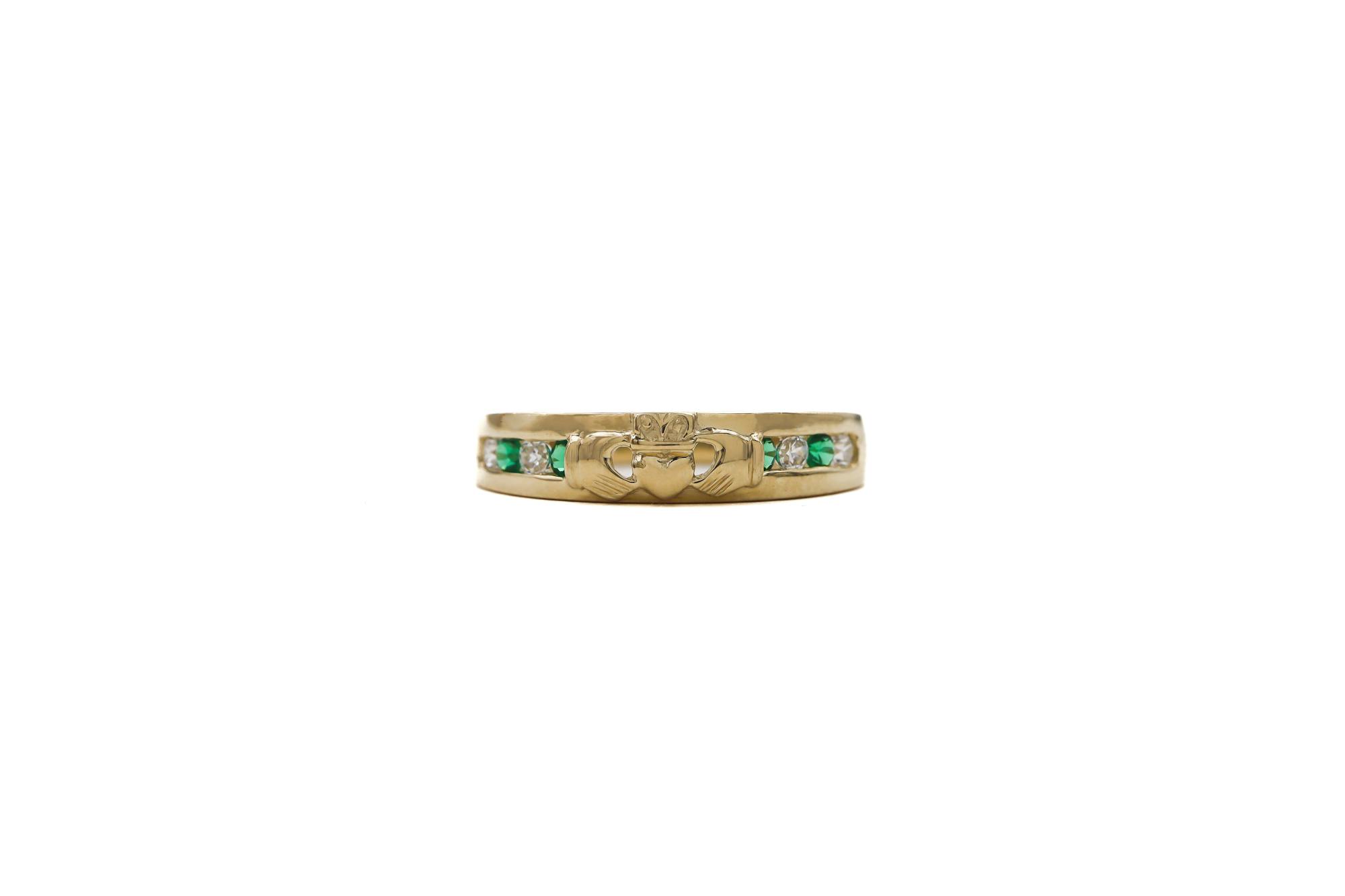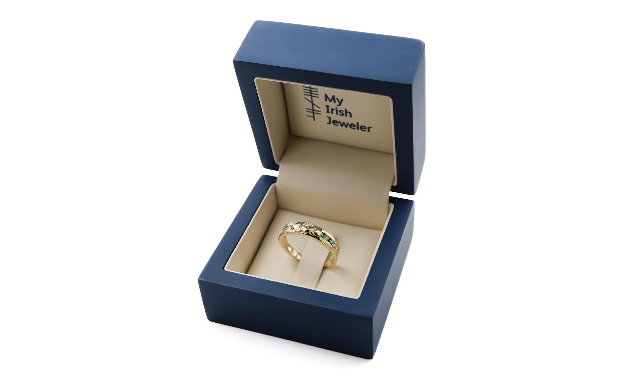 Celebrating love, loyalty, and friendship, this exceptional Claddagh ring is the perfect blend of Irish tradition and elegant design. Nestled within a streamlined and secure channel setting, your choice of alternating emerald and clear CZ or all CZ stones add vibrancy and sparkle.