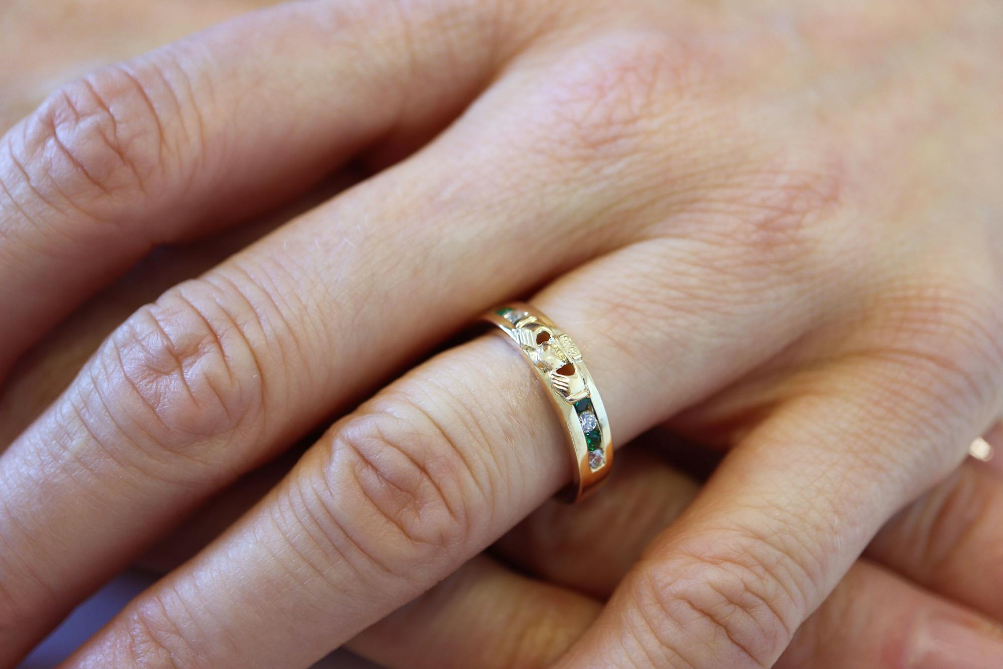 This 9K Gold CZ Claddagh Anniversary Band is suitable for the following rings.
