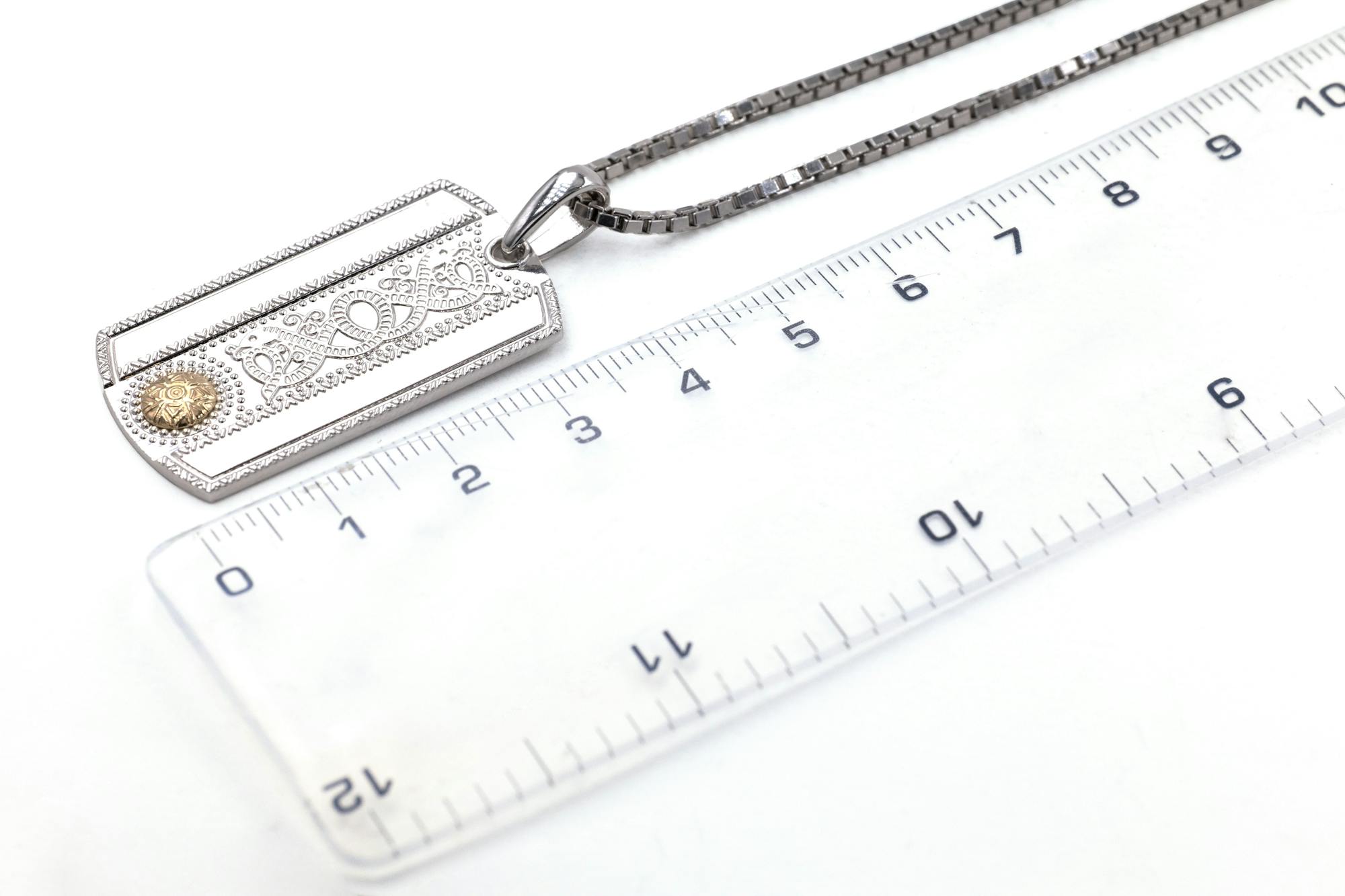 Measured including the bale, the beautifully detailed front of the necklace is in contrast to the smooth reverse, ideal for comfortable wear with ample space for a personal engraving to make this symbolic piece your own.