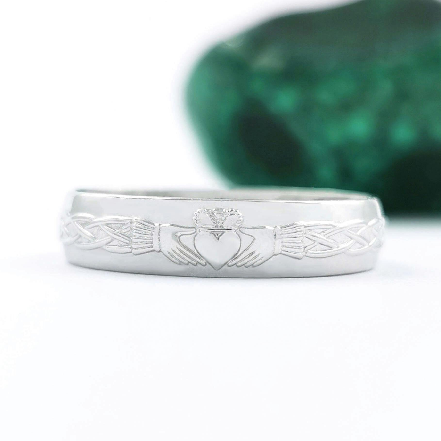 The heart crown and hands of the Claddagh represent, love, loyalty, and friendship, a beautiful symbol cherished in Ireland and exchanged between sweethearts for over 400 years. The Celtic knot band enhances this meaning, representing strength and eternity. A meaningful choice for those looking to mark milestones.