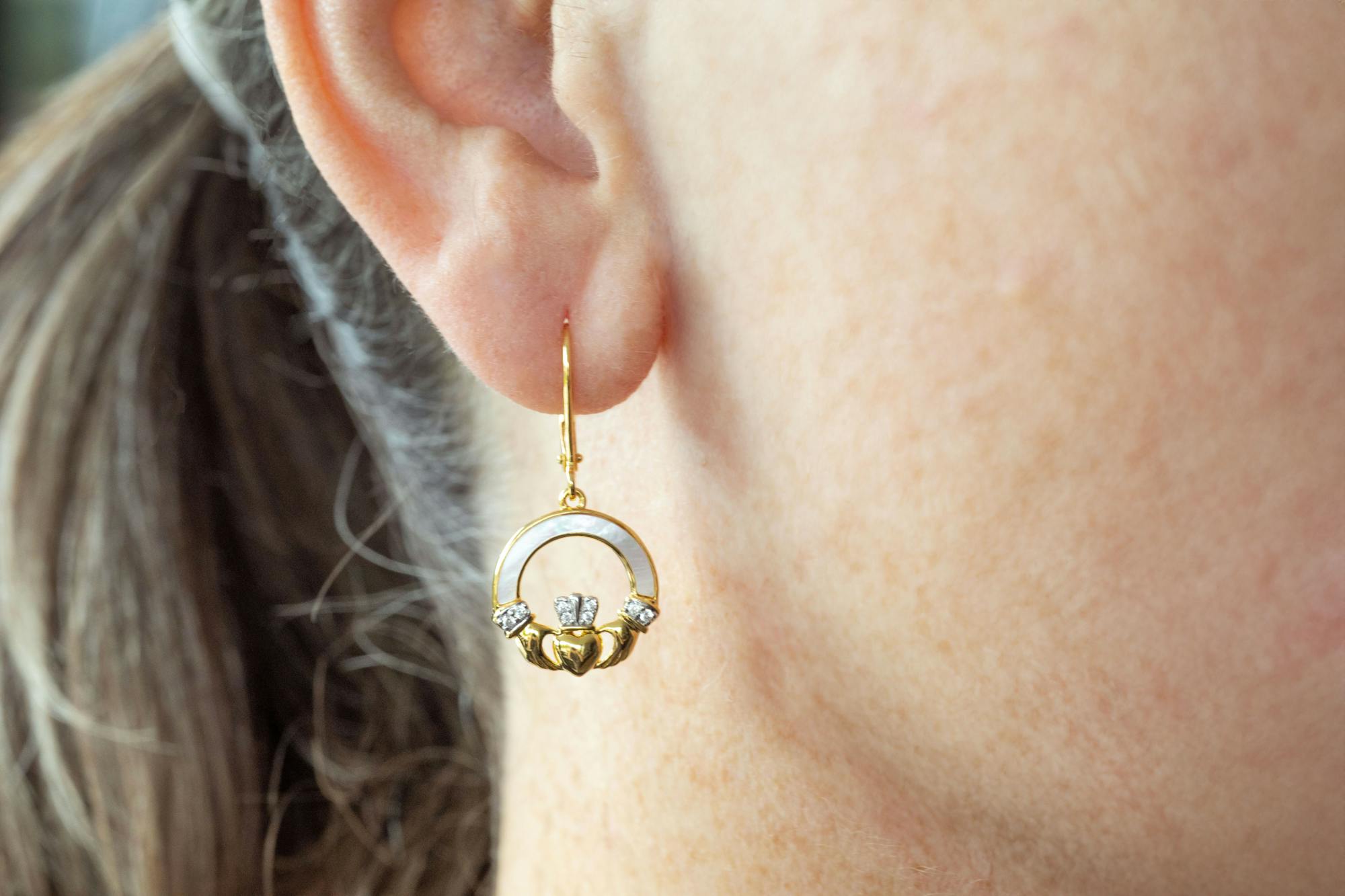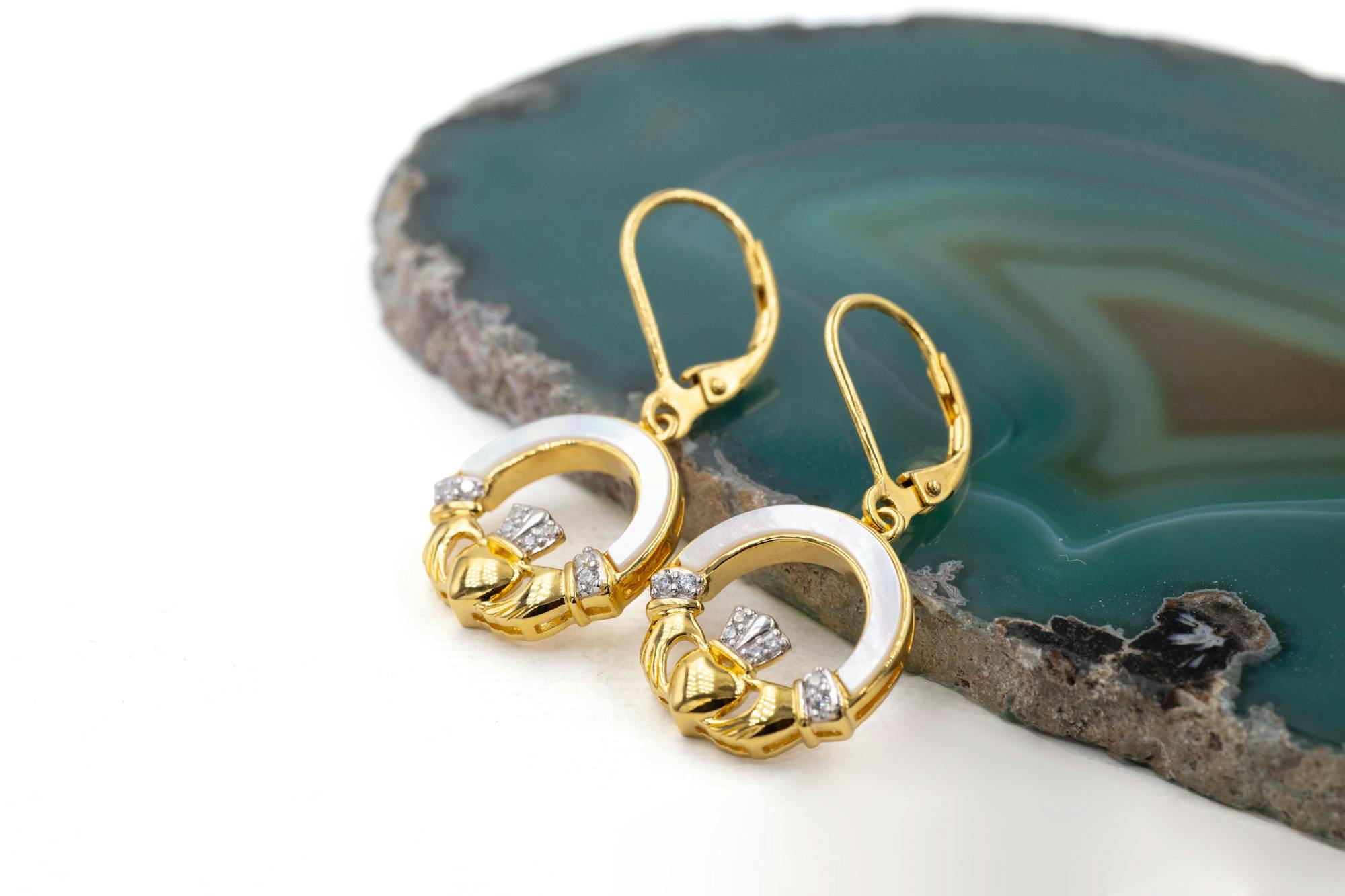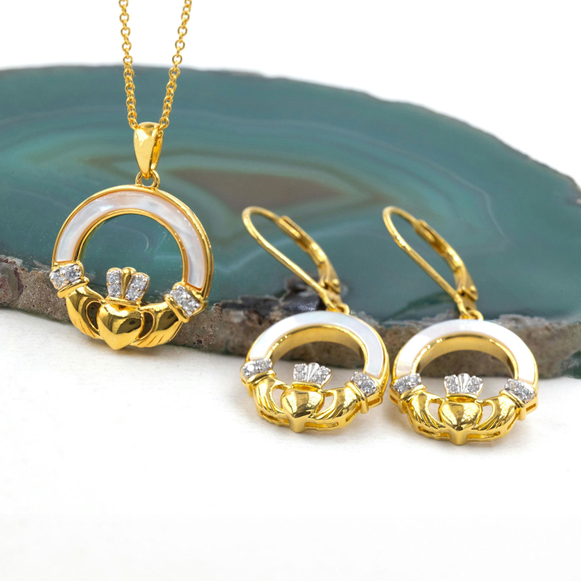 Claddagh Vermeil Mother of Pearl Drop Earring and Necklace Gift Set