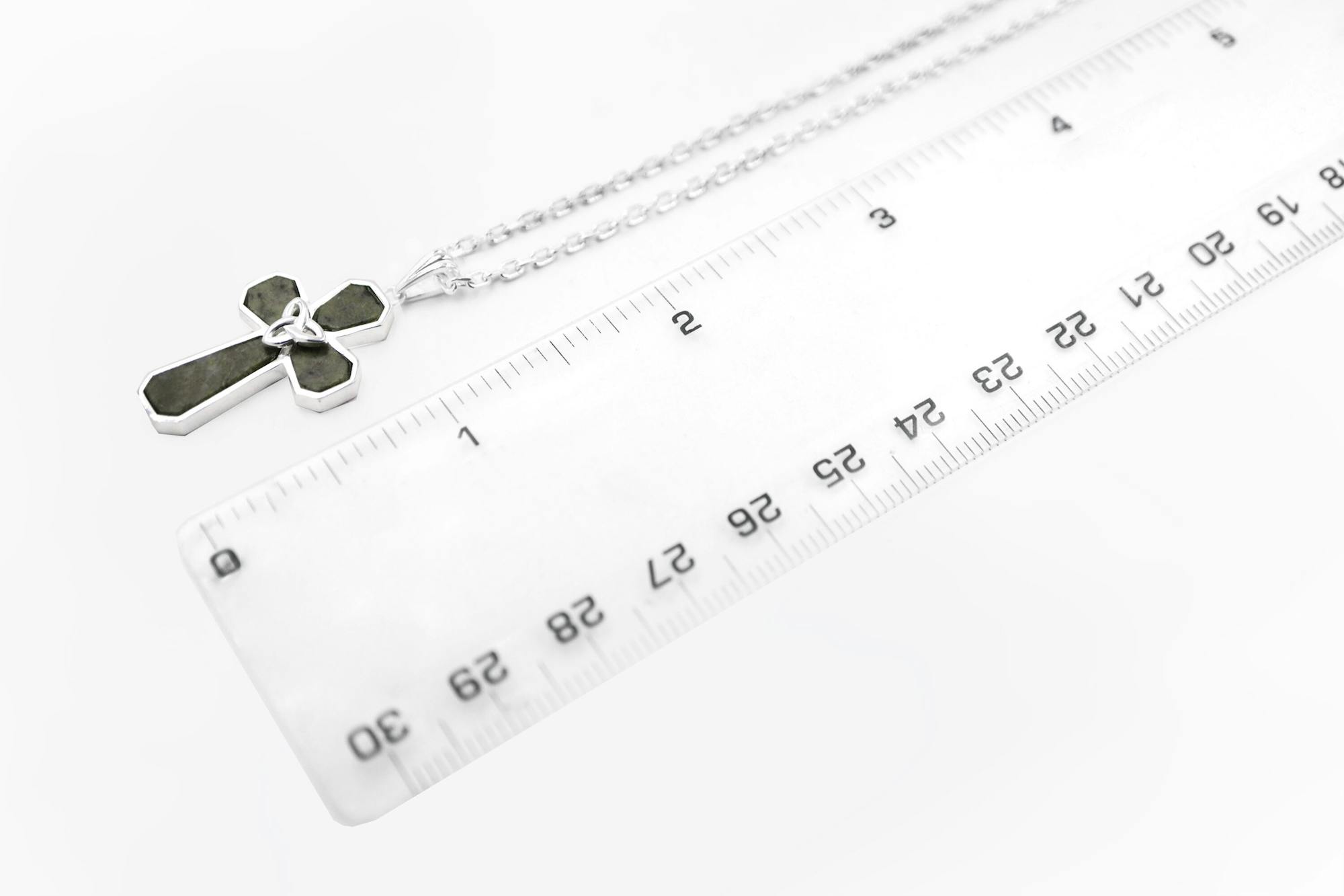 Measuring 0.62" wide by 1.25" high including the polished bale, this cross will sit elegantly on the neckline on the included 18" sterling silver chain. If you prefer to wear a longer or chunkier chain, choose from our handpicked selection that pair perfectly with this necklace.