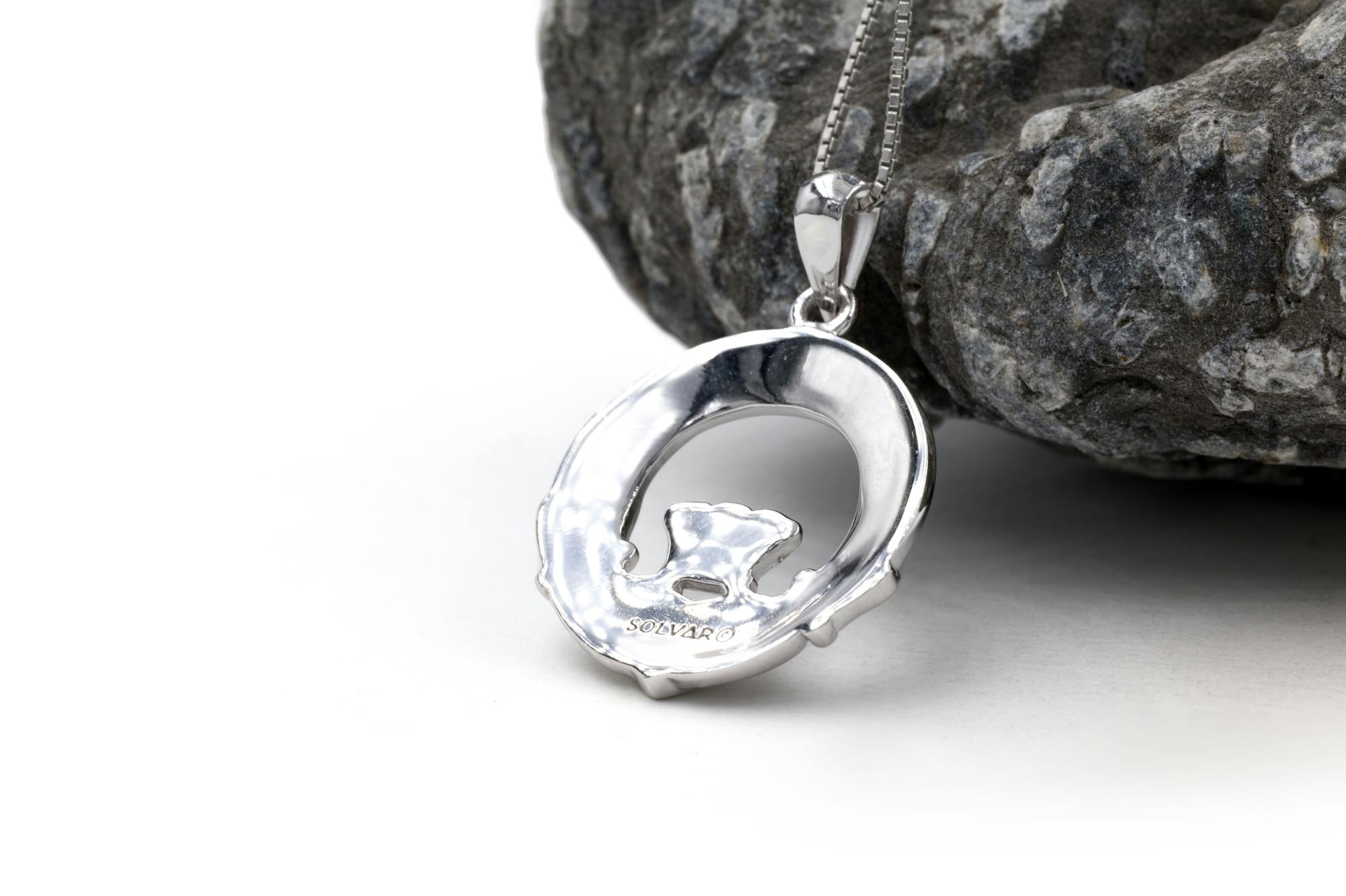 The necklace measures 1 inch, including bale, and includes an 18" sterling silver chain. Or upgrade to one of our superior Sterling Silver chains