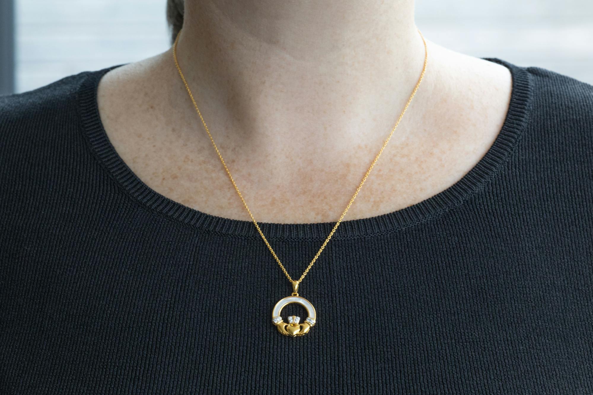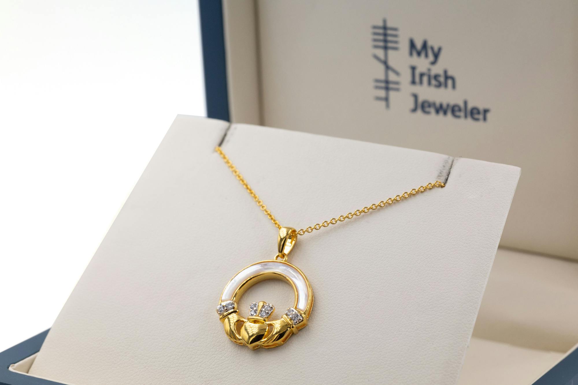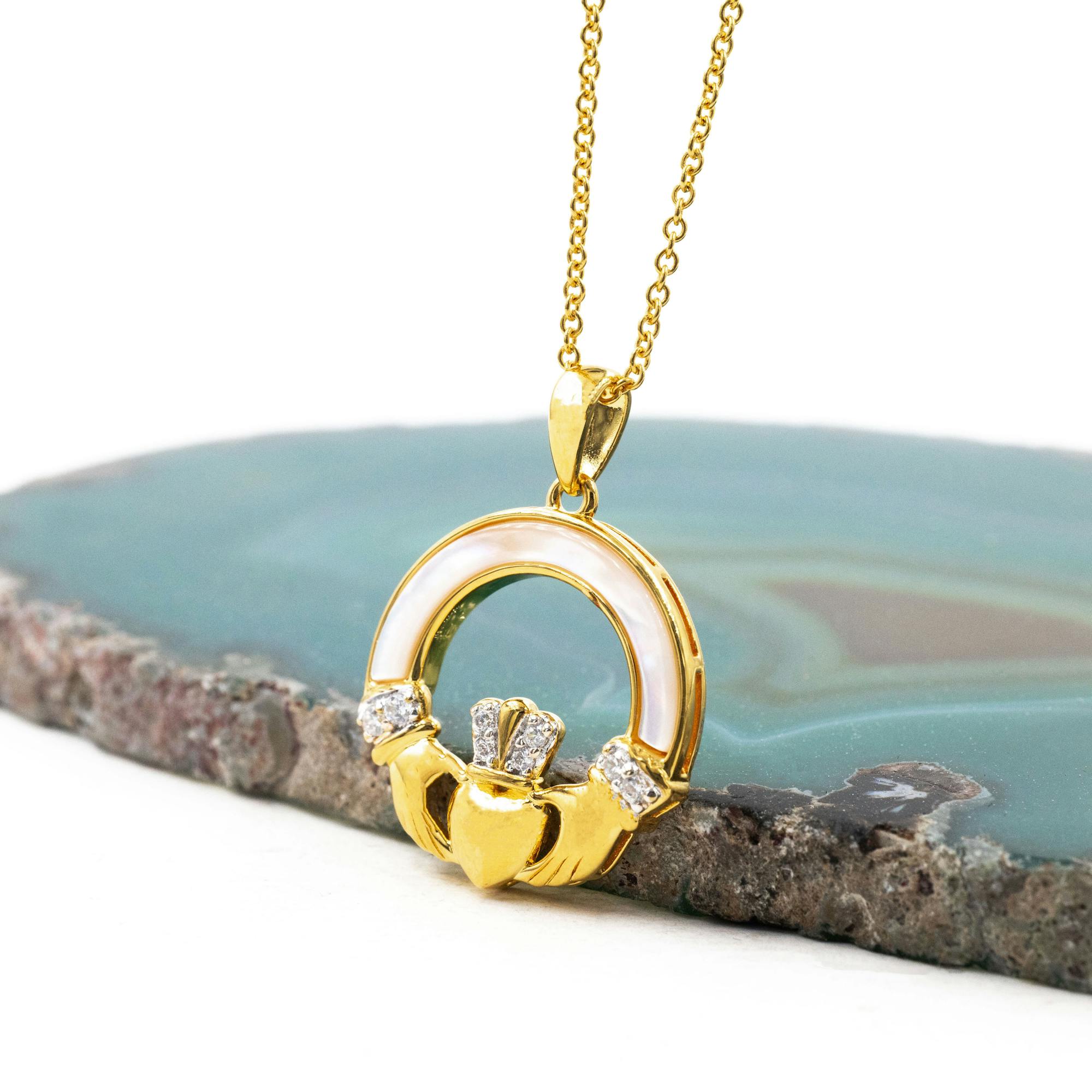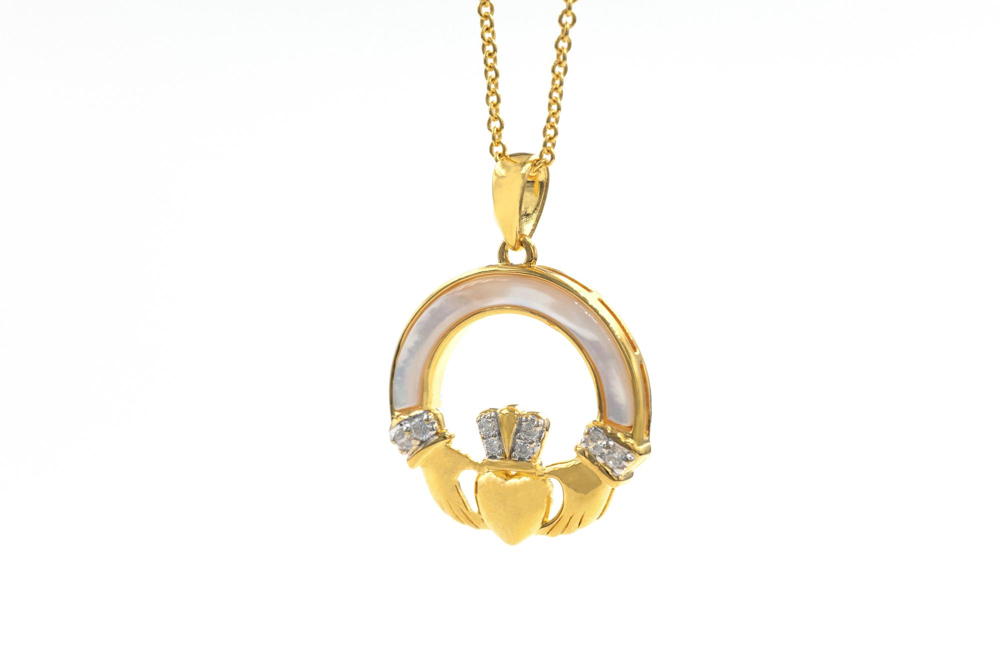 Gold Vermeil Mother of Pearl Claddagh Necklace