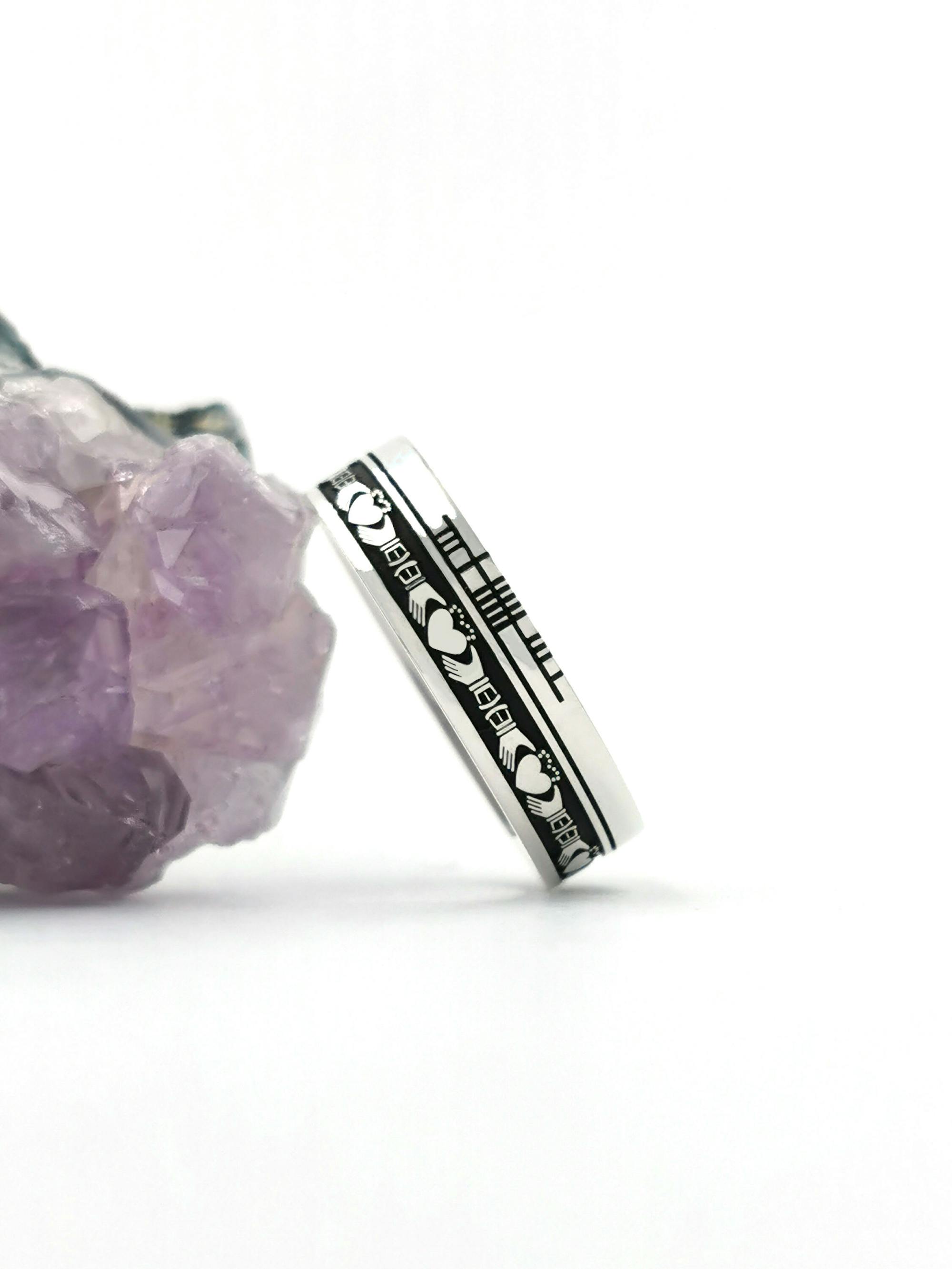 Combining the enigmatic alphabet of our ancestors with the romantic Claddagh design - share an Irish promise of love, loyalty, and friendship with this stunning ring.
