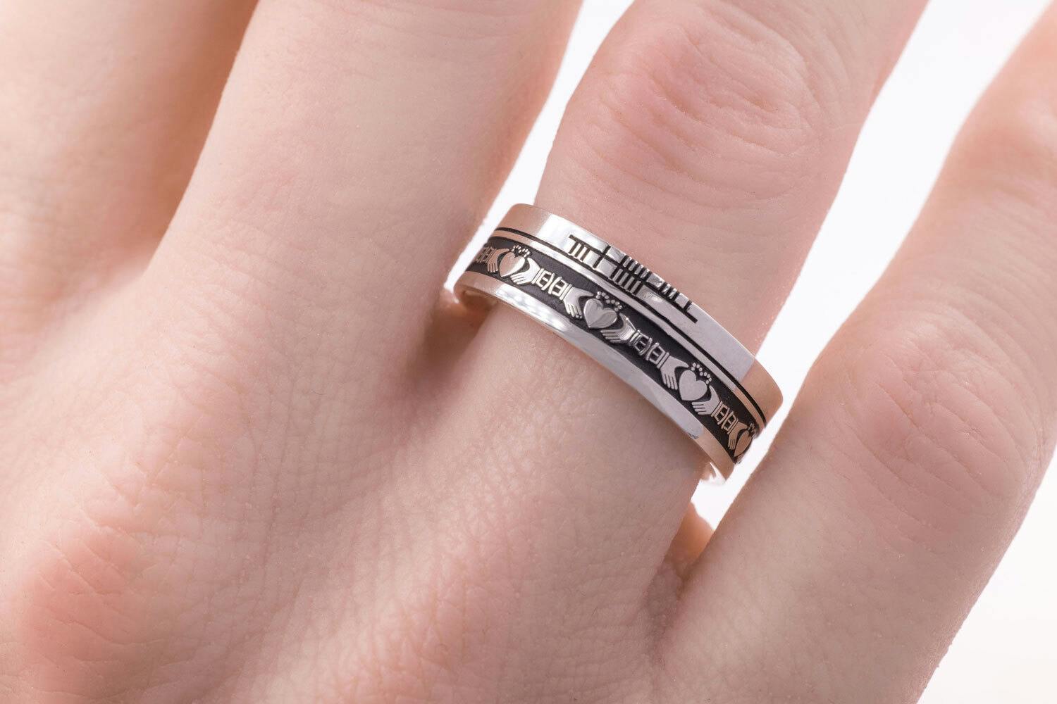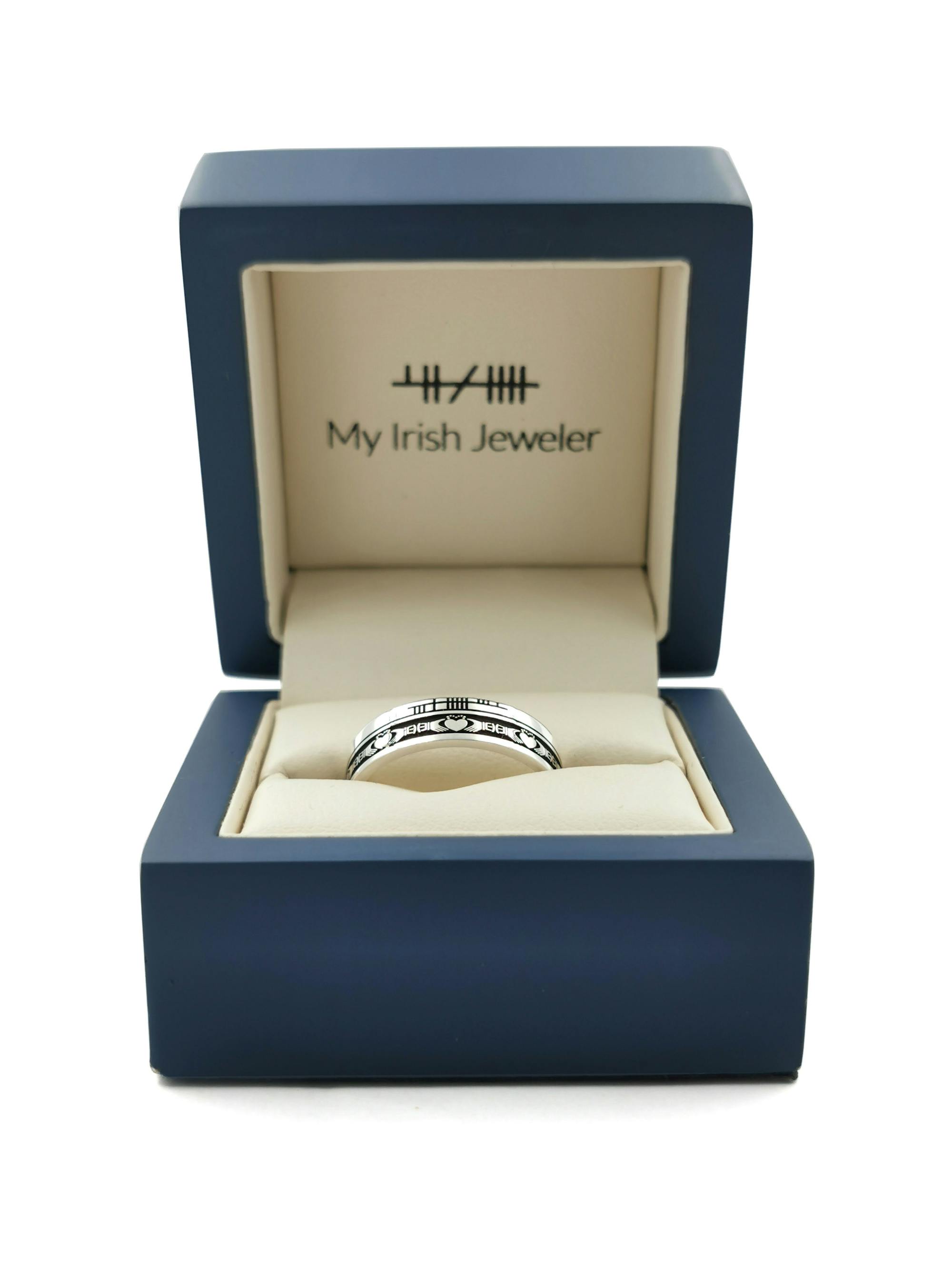 A heavyweight, comfort fit band featuring the traditional Irish Claddagh. A romantic symbol of love, loyalty and friendship, with roots that trace back to the wild atlantic coast, the Claddagh has been cherished and worn in Ireland for over 400 years.