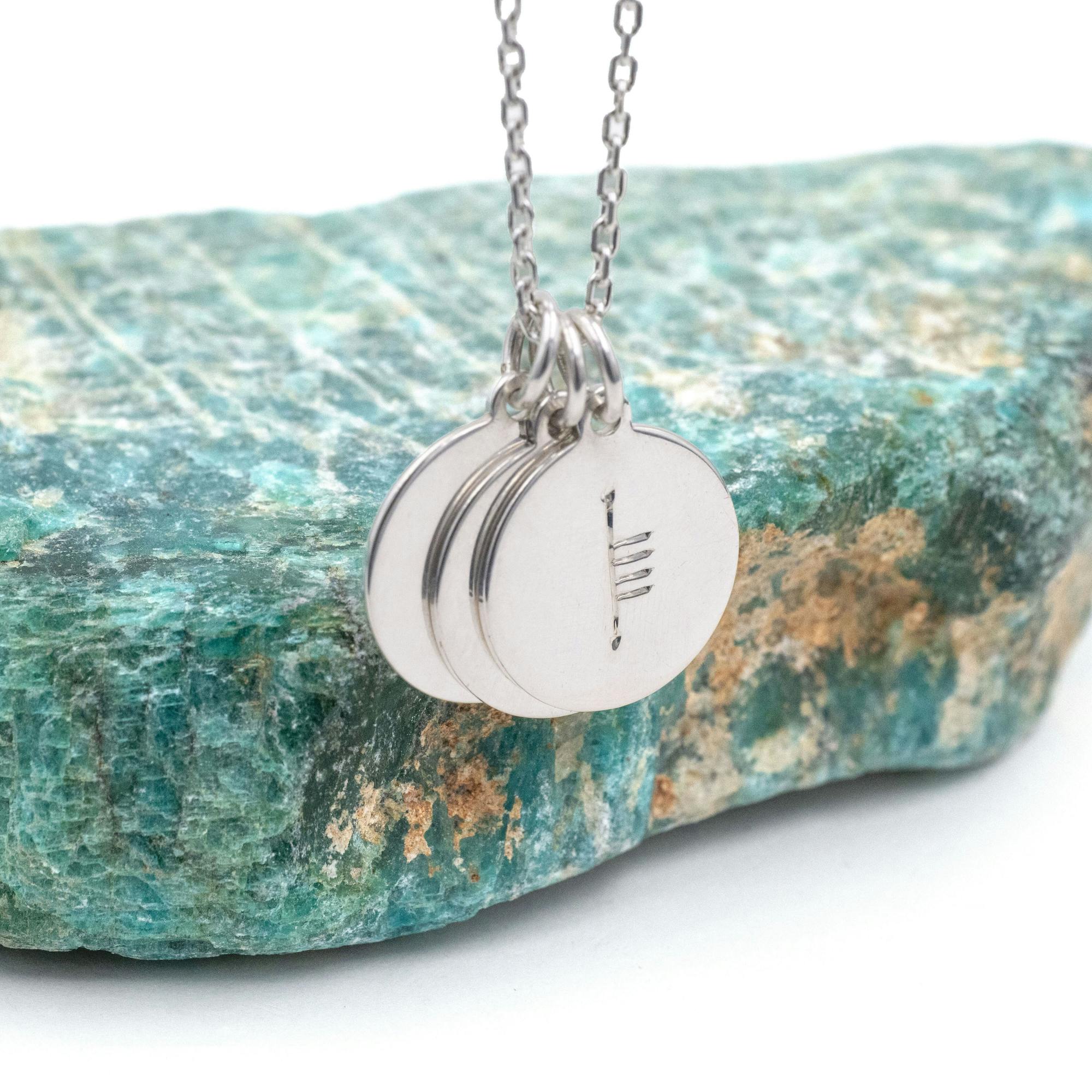 Stylish and sweet, the sleek lines of this, double sided, sterling silver necklace are a beautiful counterpoint to the hand engraving, which features ancient gaelic and ogham scripts.