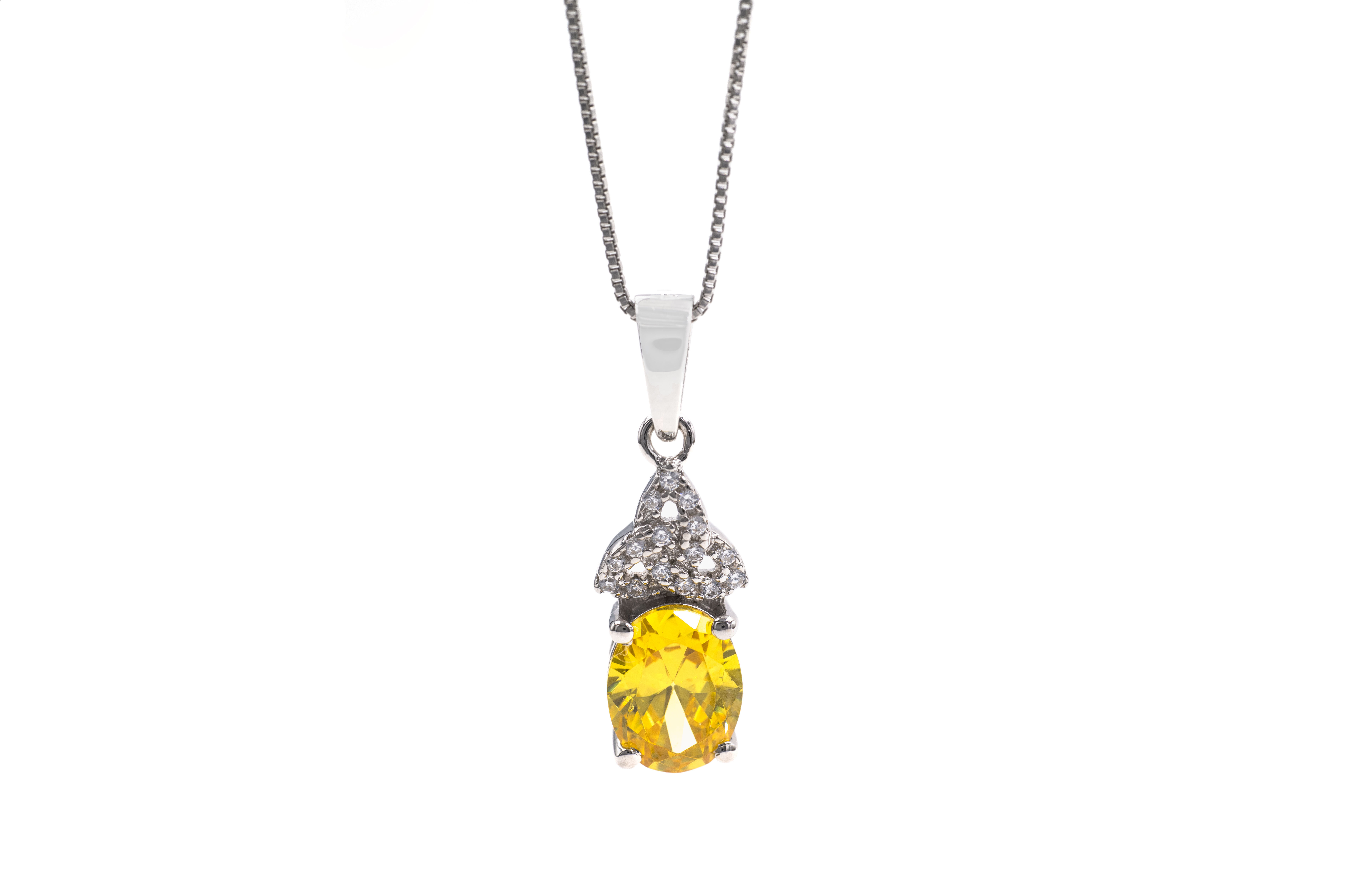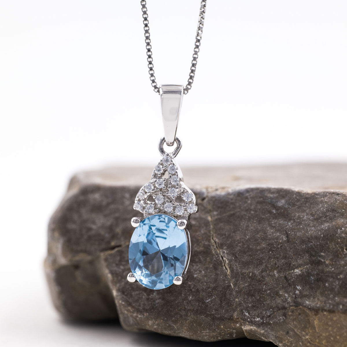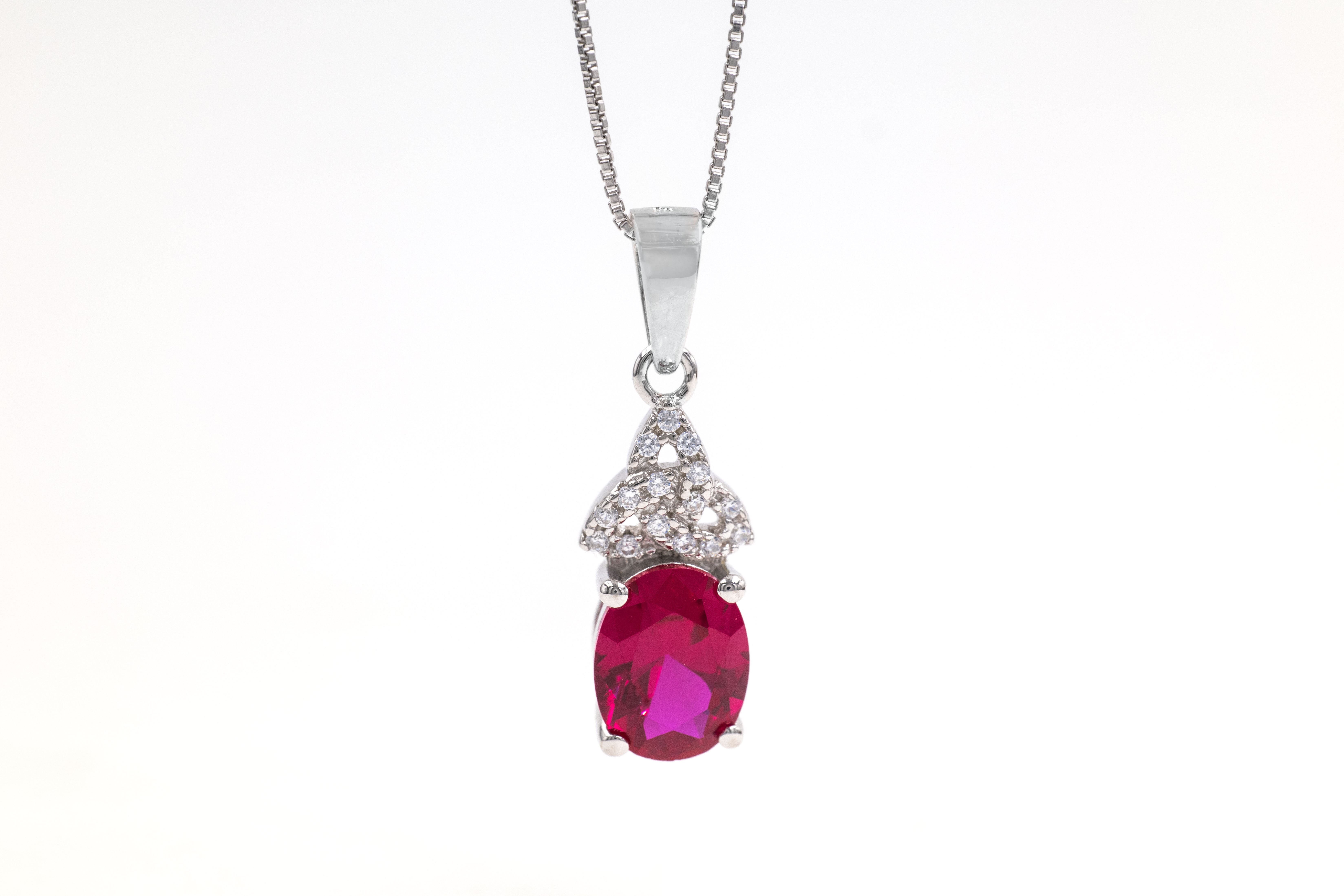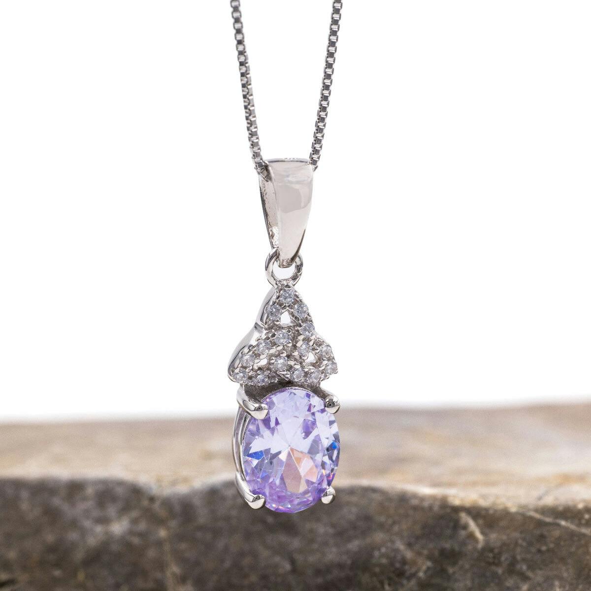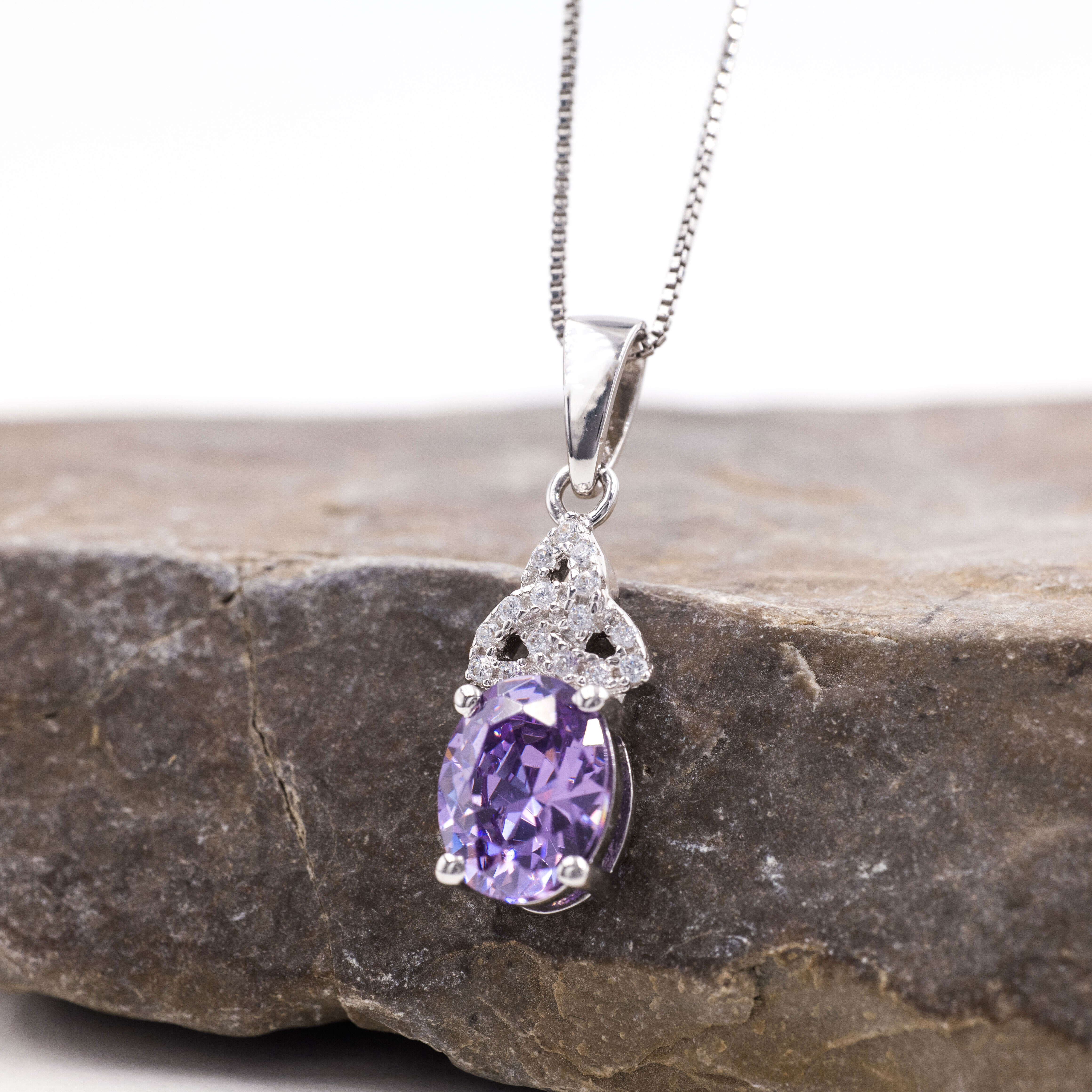 An elegant, oval, lab-created birthstone in a four-prong setting is the focal point of the stunning necklace. With 12 birthstones to choose from, pick a favourite colour or the stone for a birth month for a unique and personal necklace.