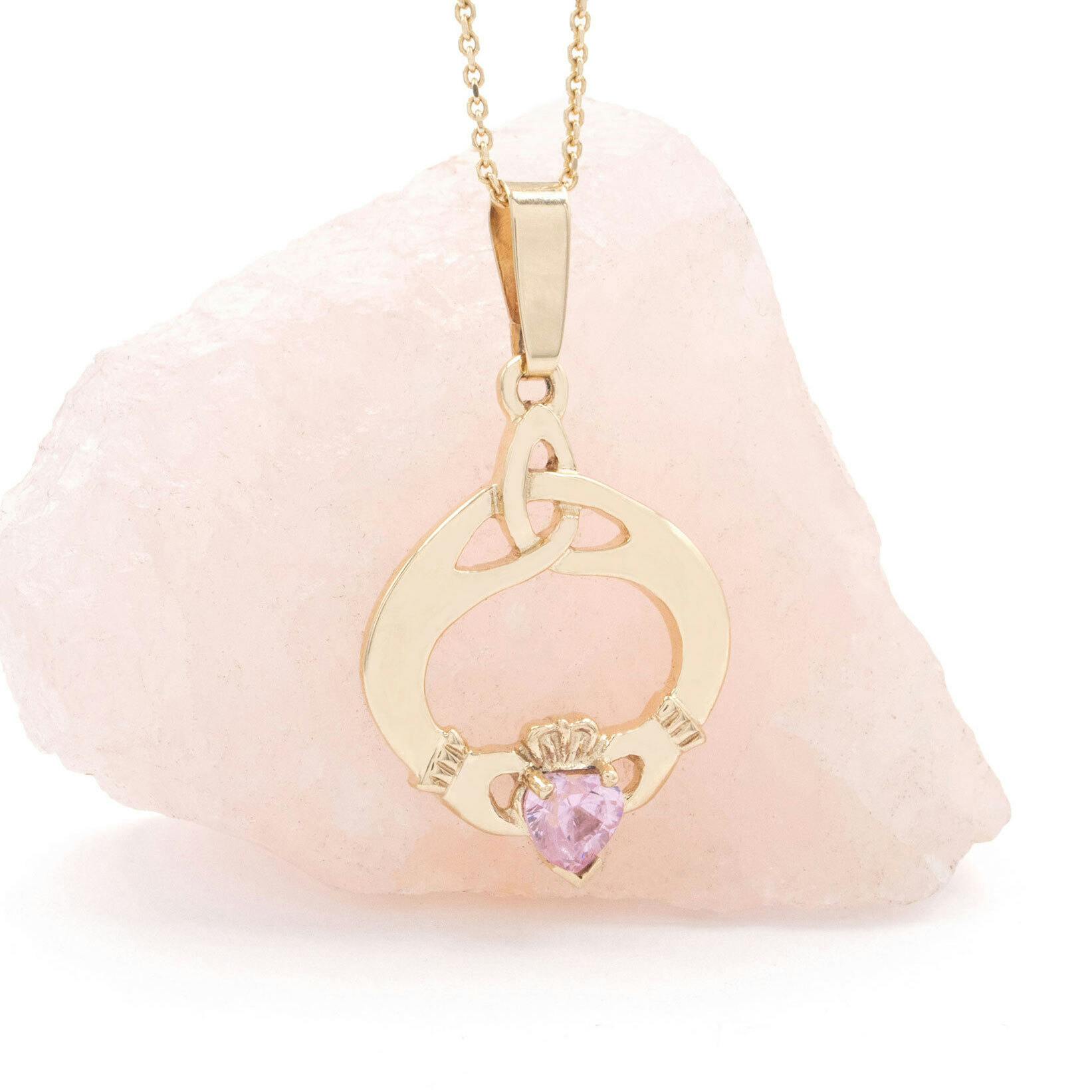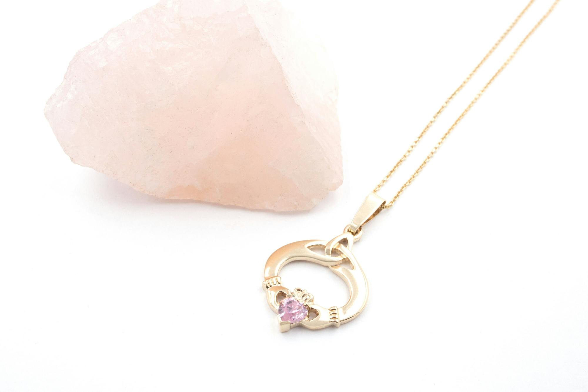 Make this classic 10K gold Claddagh necklace your own with your choice of sparkling CZ birthstone.
