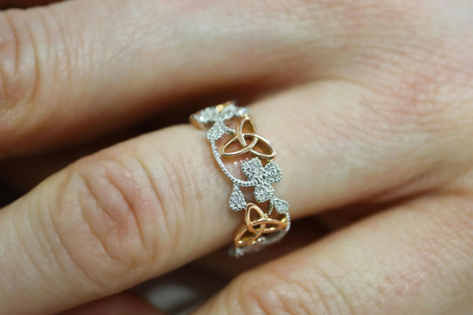 2 Reviews for 14K Diamond Shamrock and Trinity Knot Band