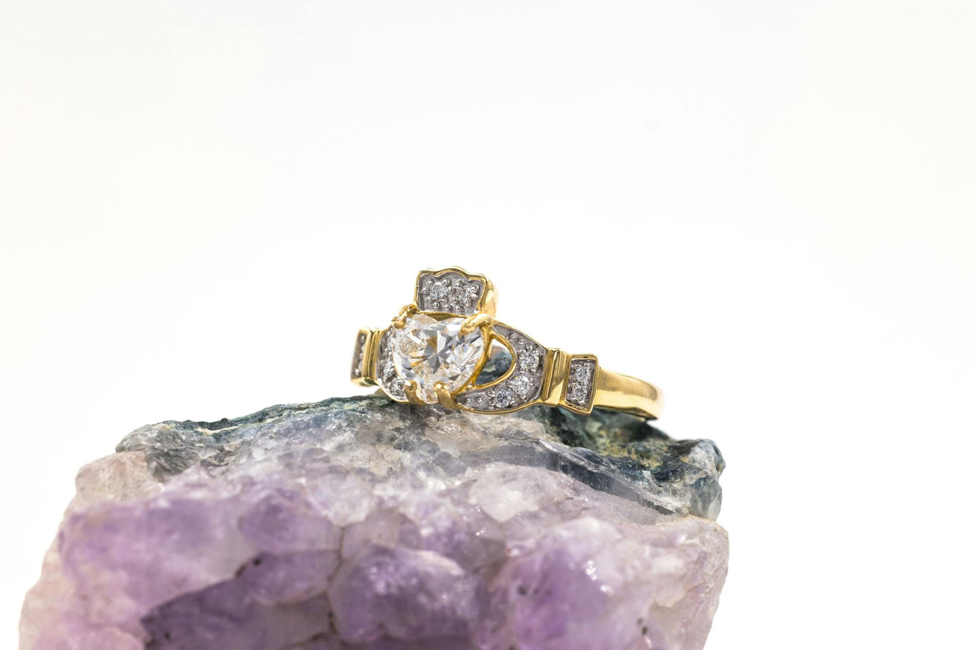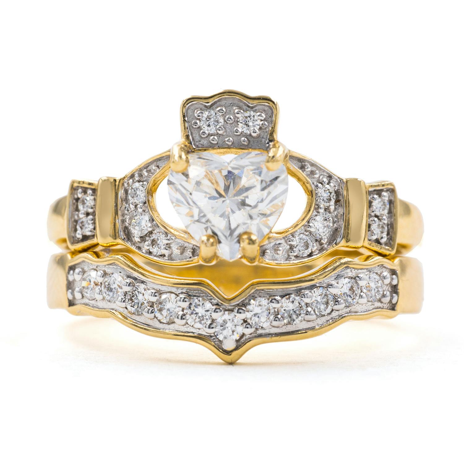 A stunning claddagh engagement set with a 0.90ct natural diamond heart. Complete with matching wedding band.