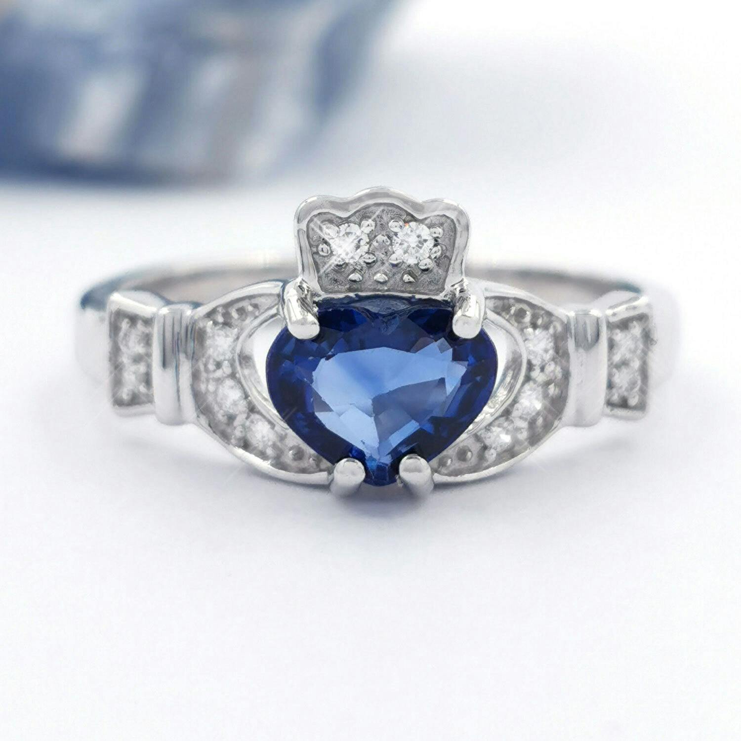 This 14K White Gold Sapphire & Diamond Claddagh Ring is suitable for the following rings.