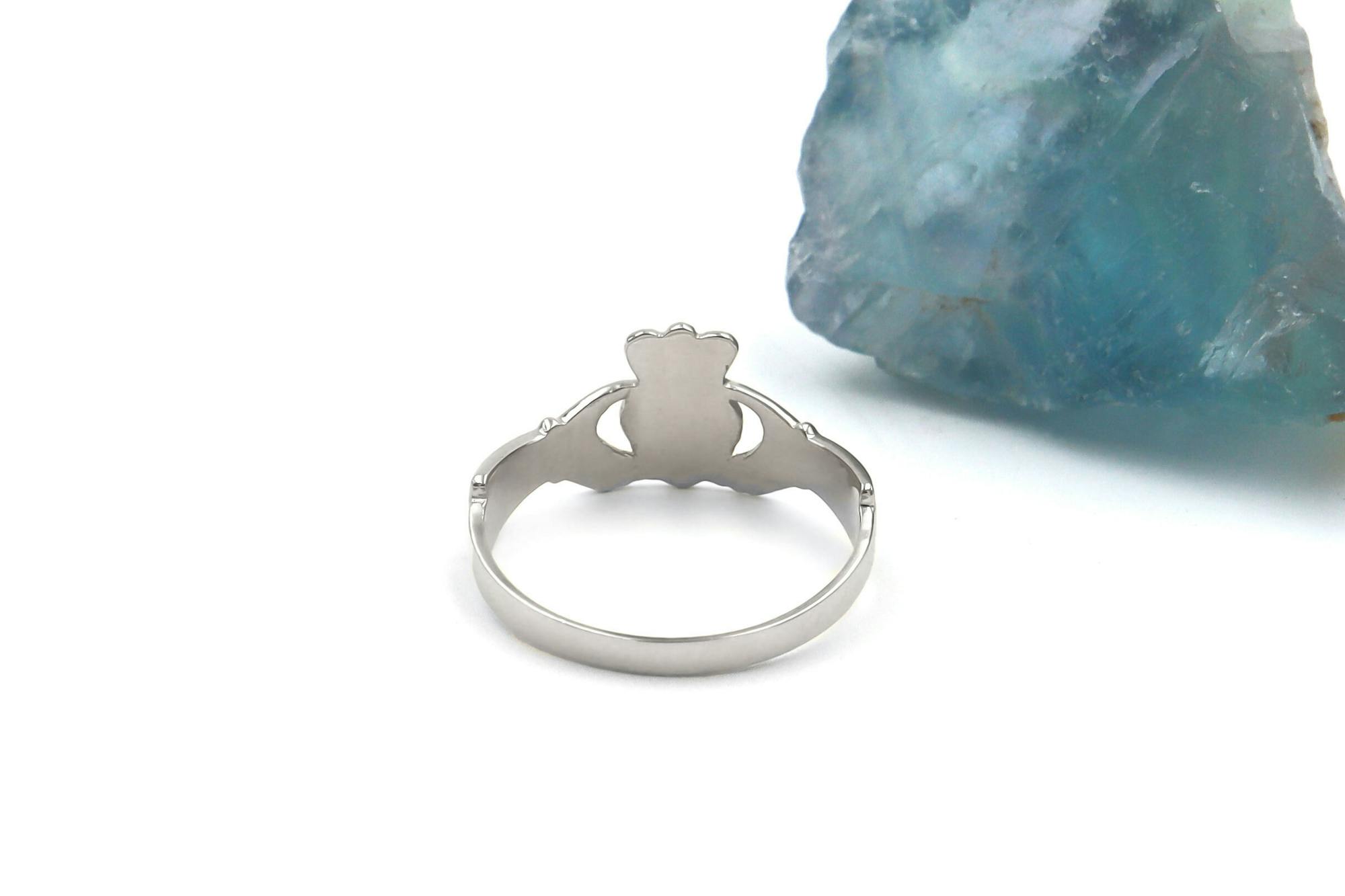 This Claddagh ring measures 9mm from the top of the crown to the base of the heart and can be made in your choice of lovely 9K white gold or rich and warm 9K yellow gold.