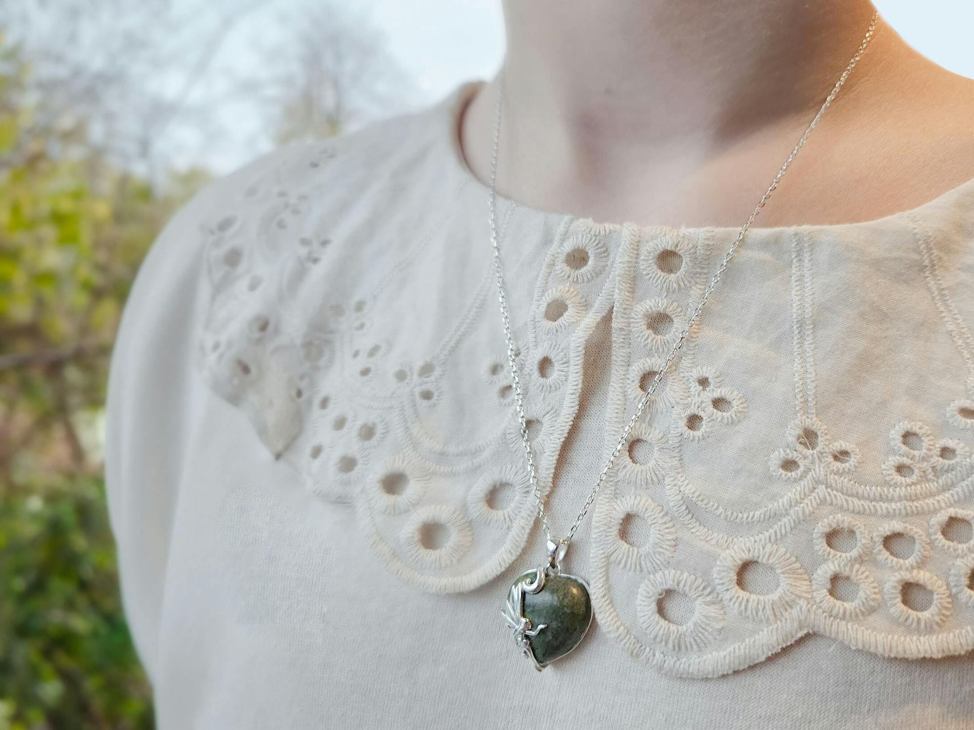 This is the first piece of jewelry I’ve ordered and it is so beautiful. The magical fairy combined with the heart shaped Connemara marble holds a special meaning to me. I absolutely love it.