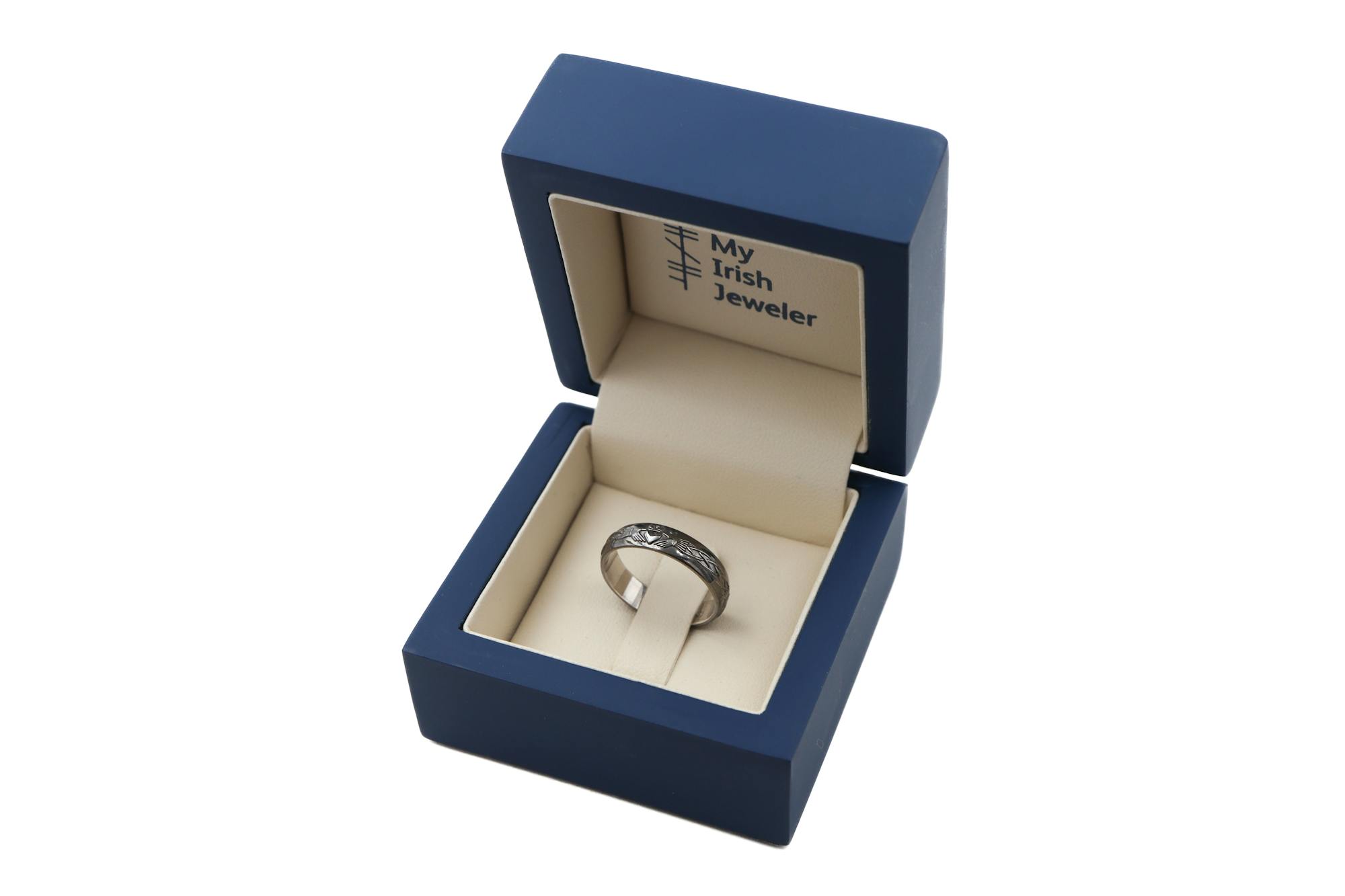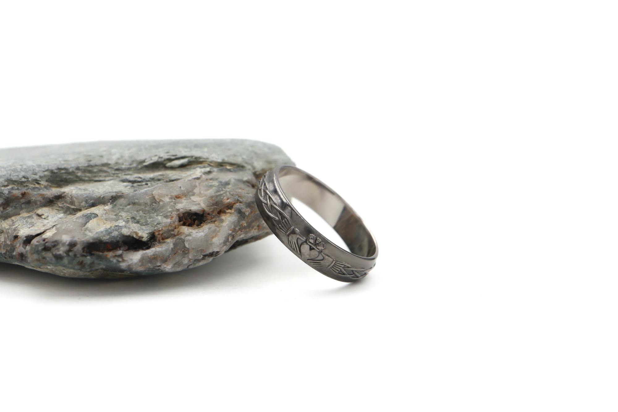 A timeless ring for a romantic soul. Your choice of precious metal with a striking black rhodium finish. Weave a story of love, loyalty, and friendship without end. Embrace Ireland, embrace tradition.
