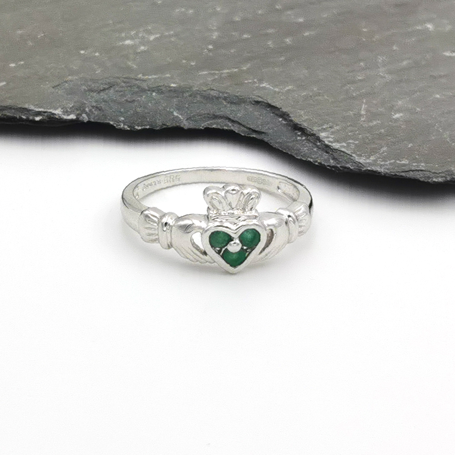 This 14K Gold Claddagh Ring Set with 3 Emeralds is suitable for the following rings.