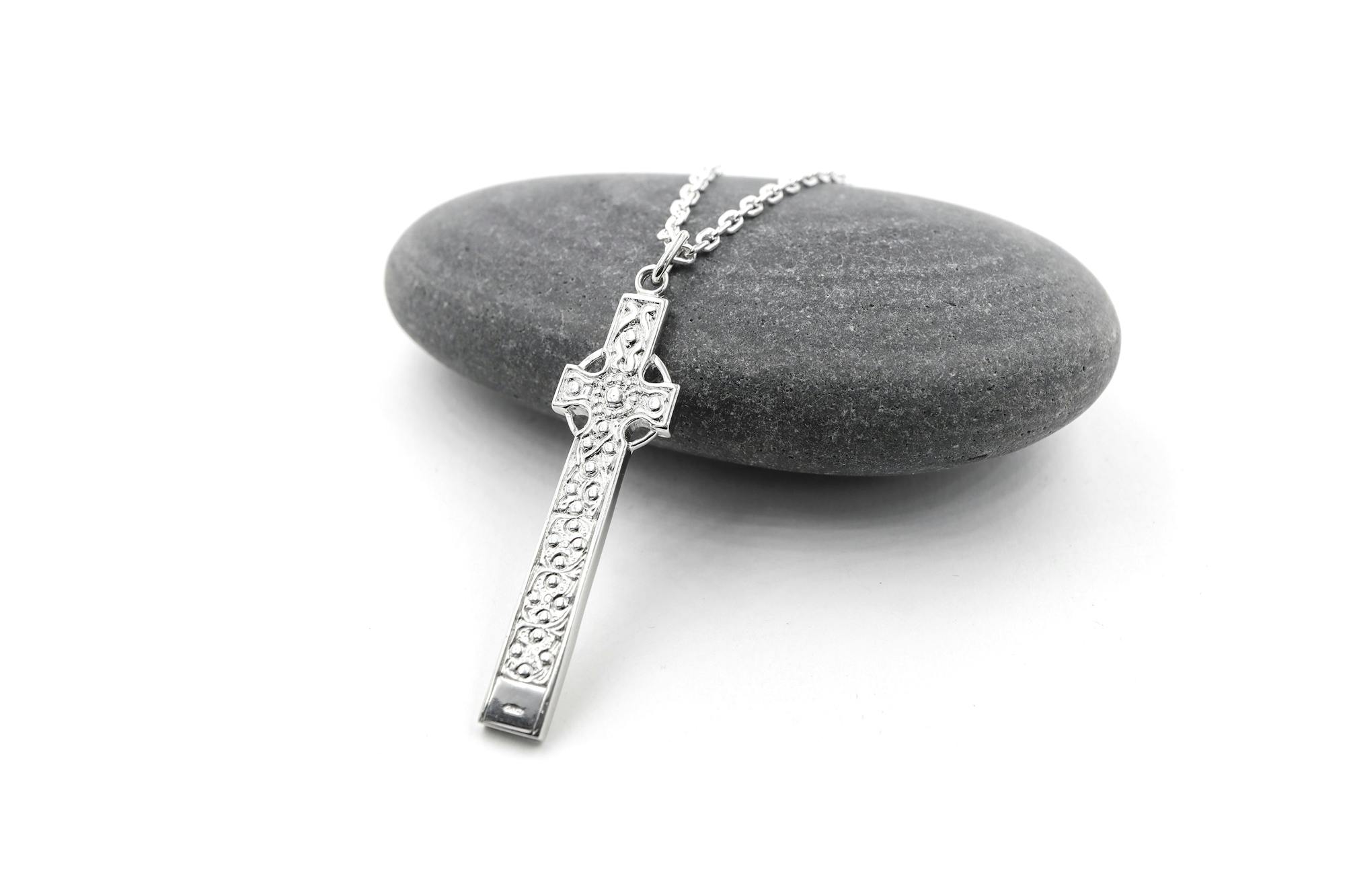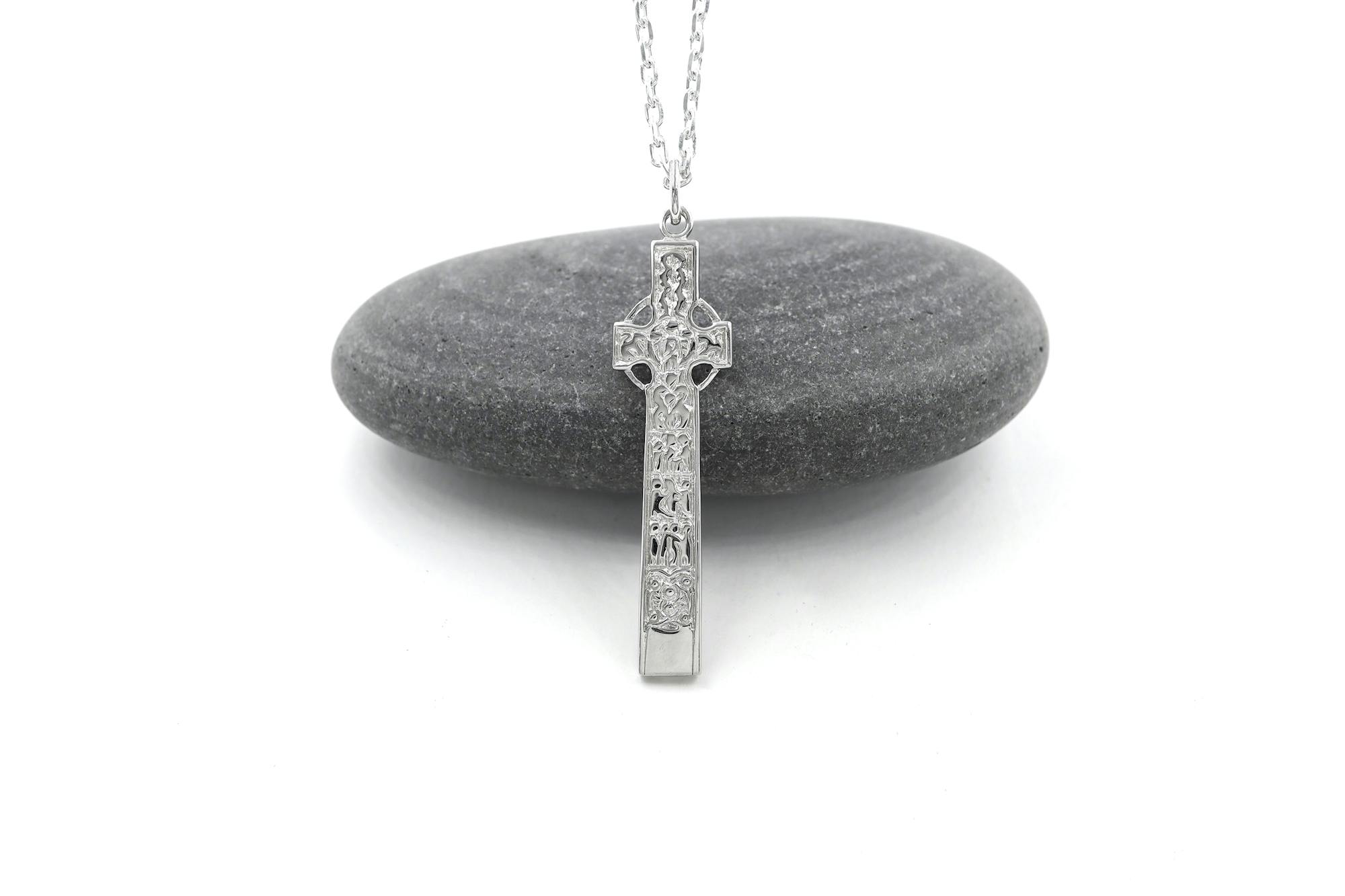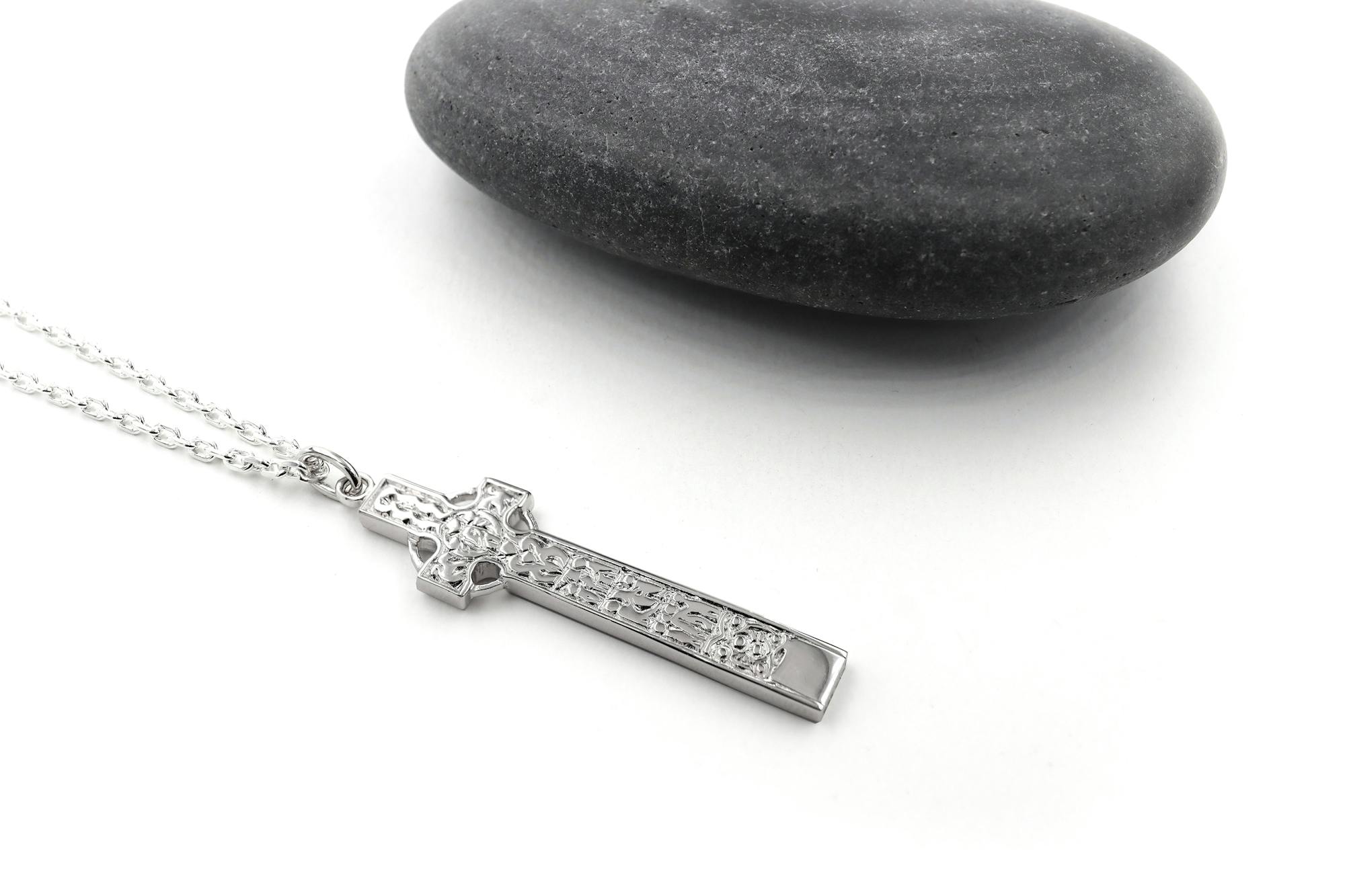 This double sided, solid, and weighty cross will last a lifetime and can be passed on as a family heirloom. Hallmarked in the assay office at Dublin Castle, you can rest assured of the fine quality of the Sterling silver. Like the original stone cross it is inspired by, this cross has been built to last and is ideal for fans of Irish culture and history, those with strong faith, or connection to Ireland.
