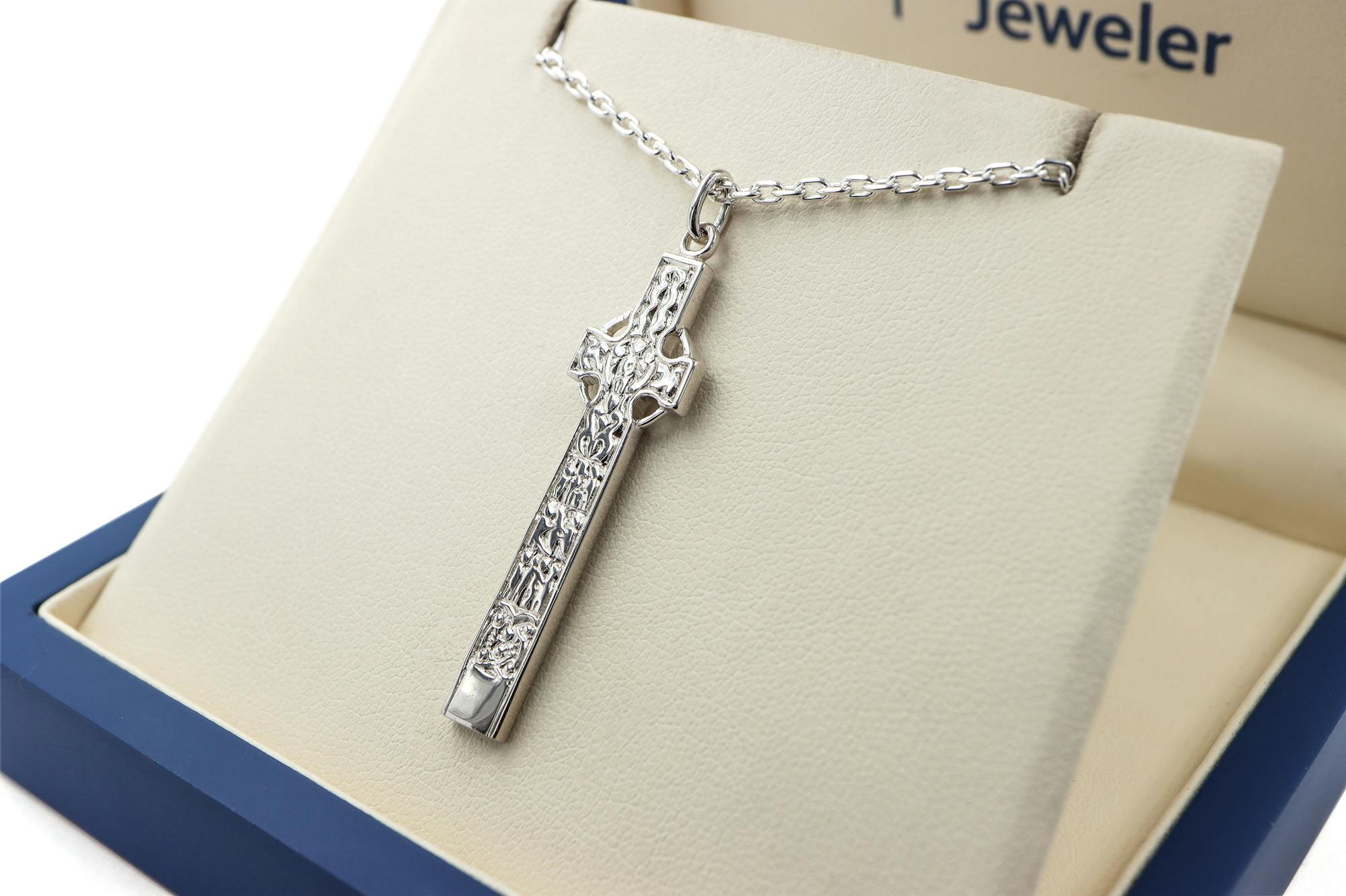 Your cross includes an 18" sterling silver cable chain. If you prefer something longer or chunkier choose from our handpicked selection of sterling silver chains that pair perfectly with this cross.