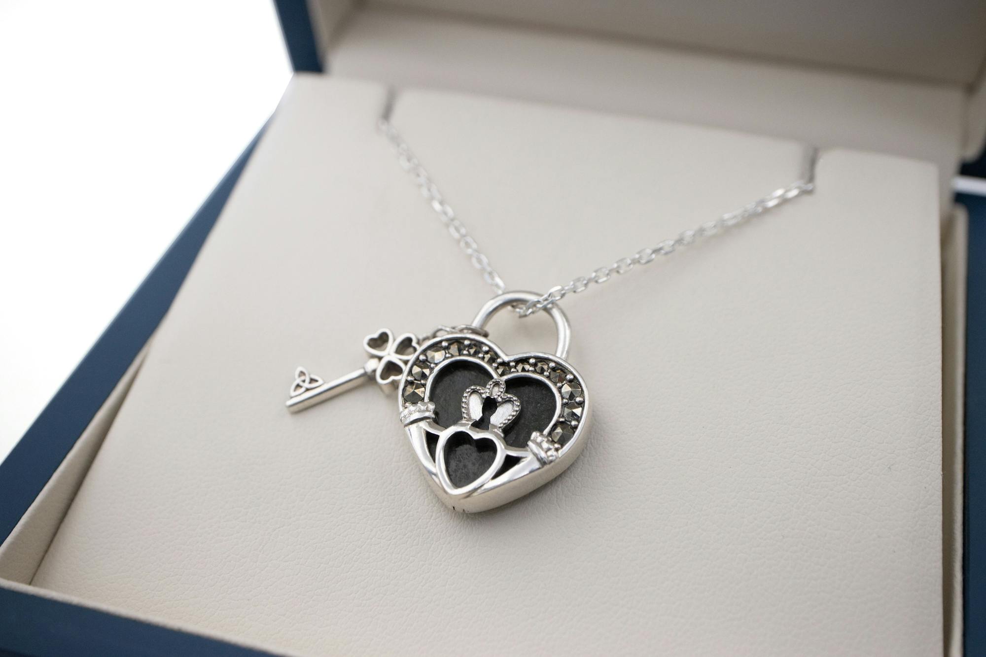 Inspired by the locks placed by lovers on the Ha'penny Bridge in Dublin, this charming necklace is the perfect way to capture your love of Ireland or for a special someone.