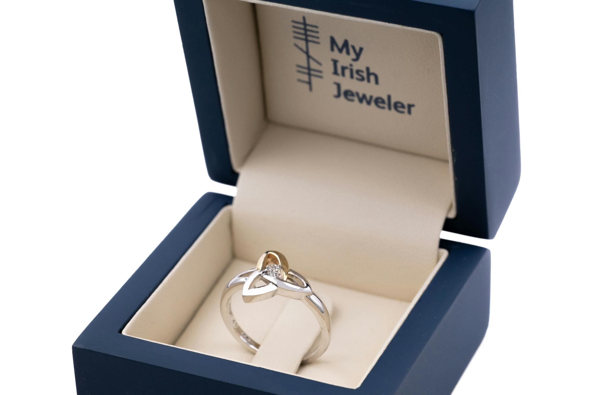 Dear Peter, I am delighted with my beautiful Silver and 10K Gold Diamond set Trinity Knot Ring - and I have, today received my Trinity Drop Earrings which match perfectly. Service was perfect, and jewellery arrived beautifully, and safely packed, and earlier than expected which was a lovely surprise.Thank you to the team at My Irish Jeweller. Vivi.