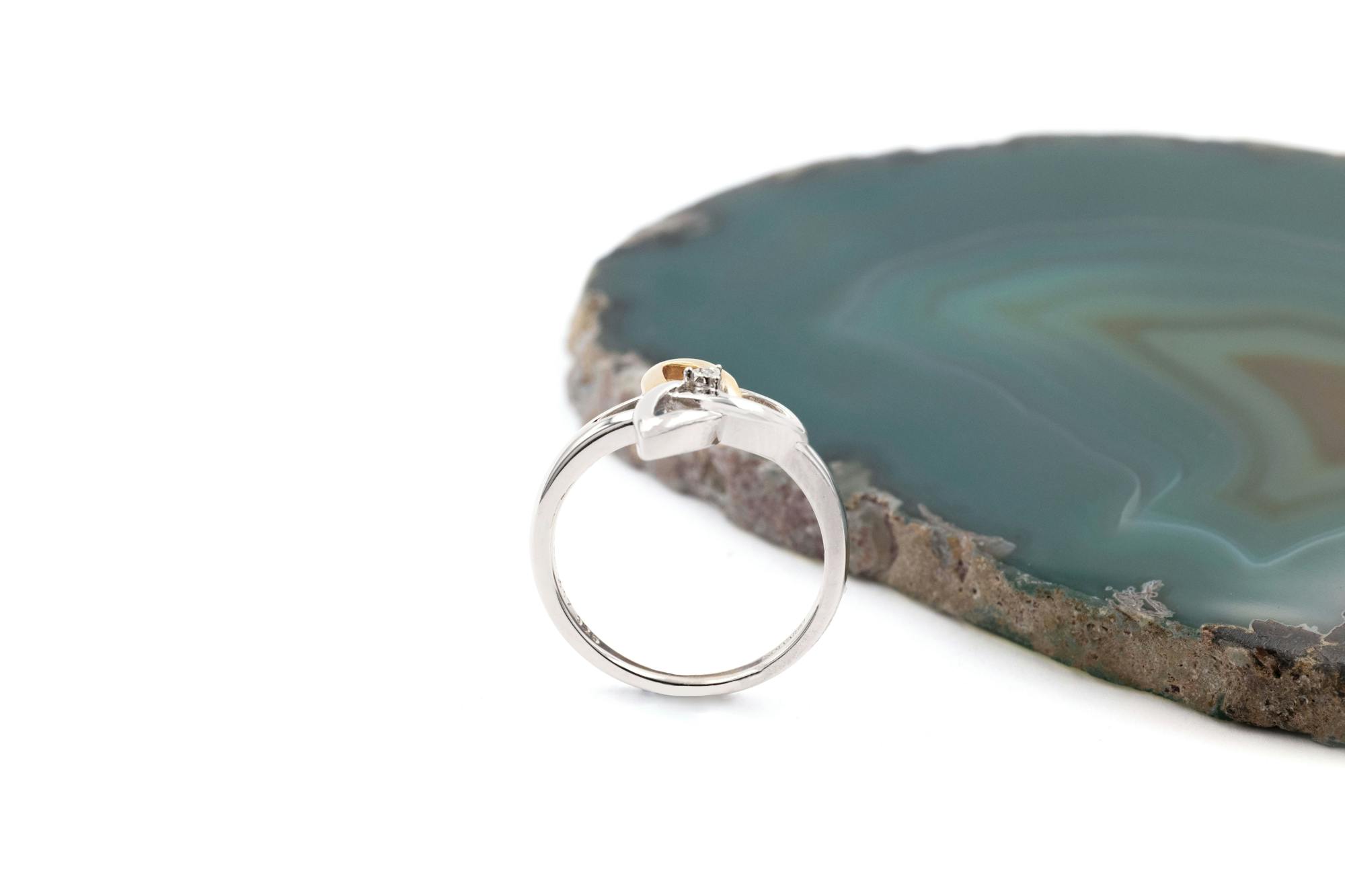Solid sterling silver is artfully combined with rich and warm 10K yellow gold and finished with a sparkling diamond accent for a versatile ring with style and substance.