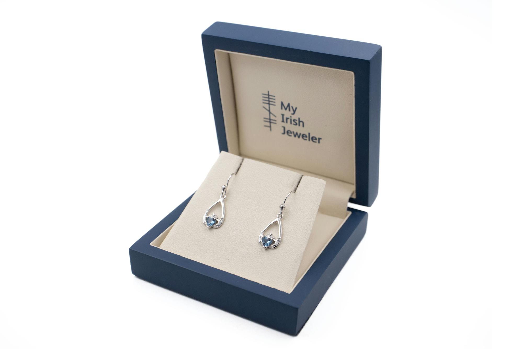 These teardrop shaped, sterling silver, Claddagh earrings are a beautiful and symbolic piece to wear or to gift.