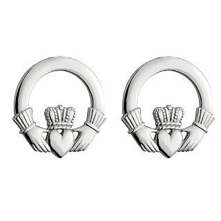 Sterling Silver Claddagh stud earrings. An iconic design to symbolize love, loyalty, and friendship. The hands signify friendship, the heart love, and the crown loyalty.