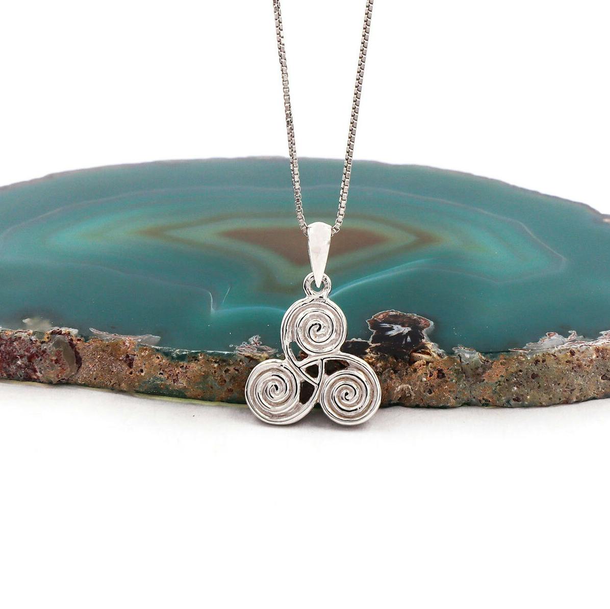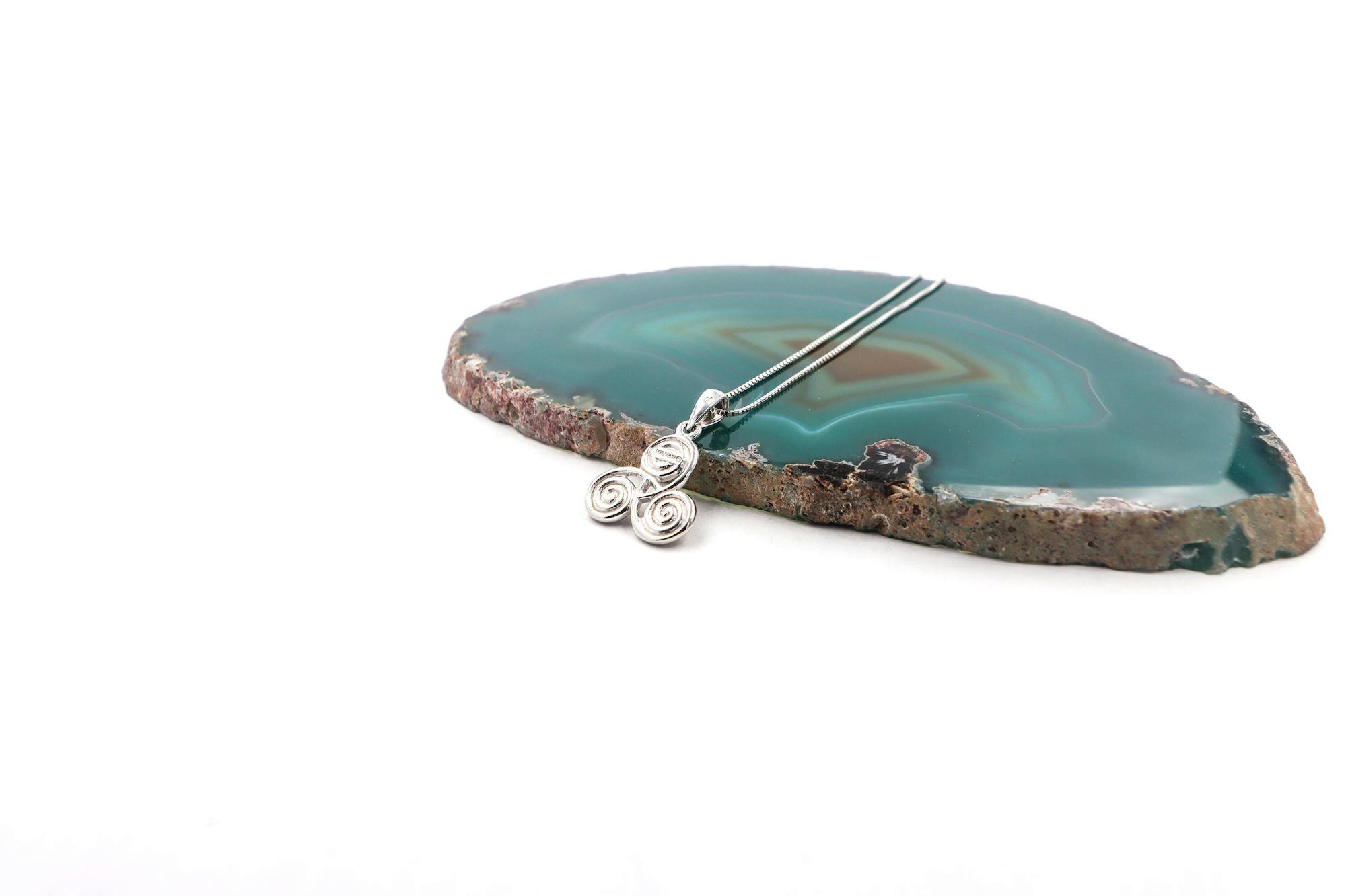 The design of this sterling silver necklace is inspired by the ancient spiralling stone engravings at Newgrange - a spectacular Neothithic structure over 5,000 yrs old, older than the Egyptian pyramids.