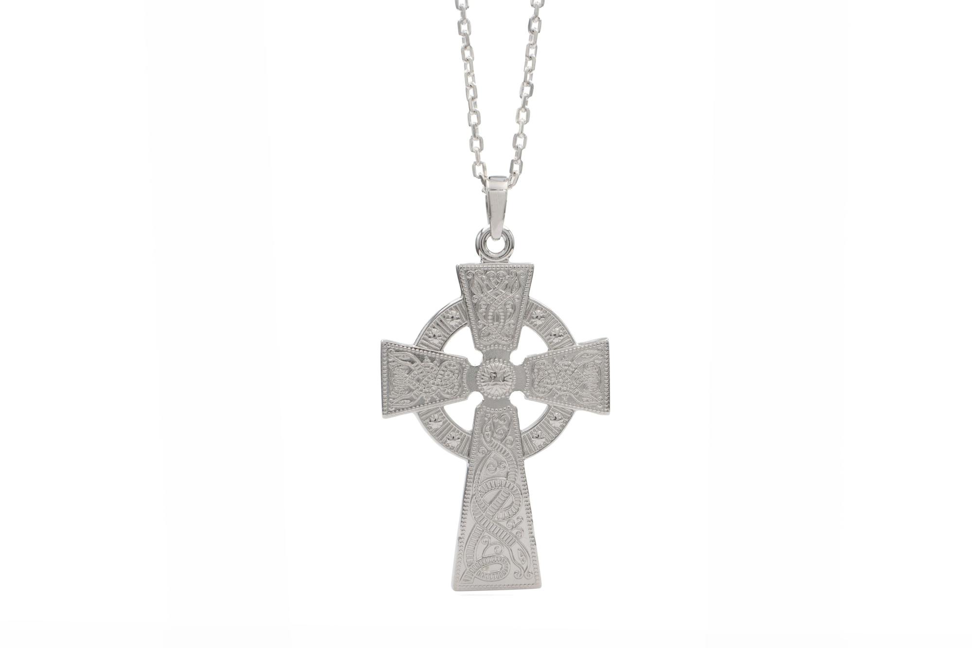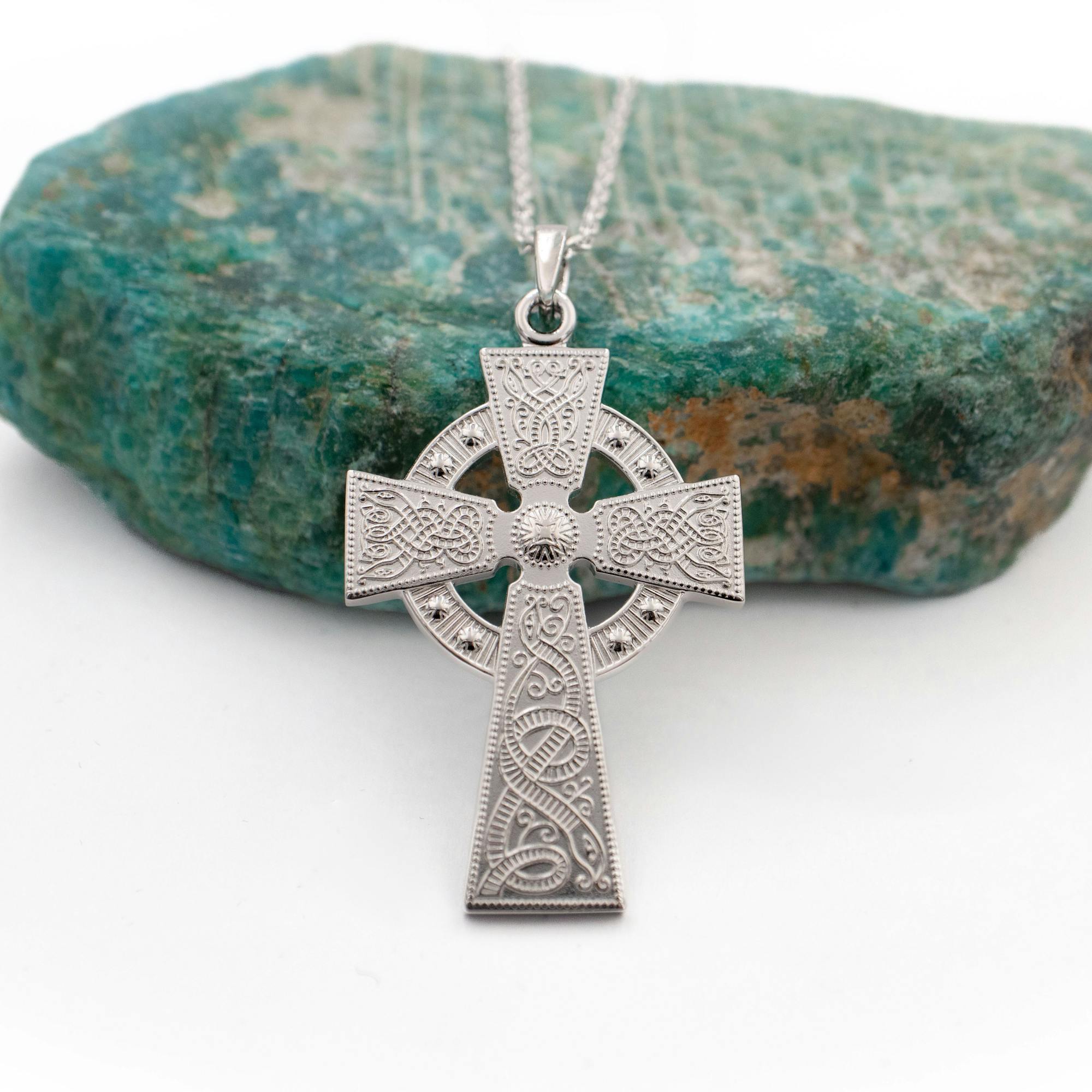 Fine detailing, expert craftsmanship, and ties to Irish treasure and ancient warriors make this Celtic Cross one of our most popular pieces.