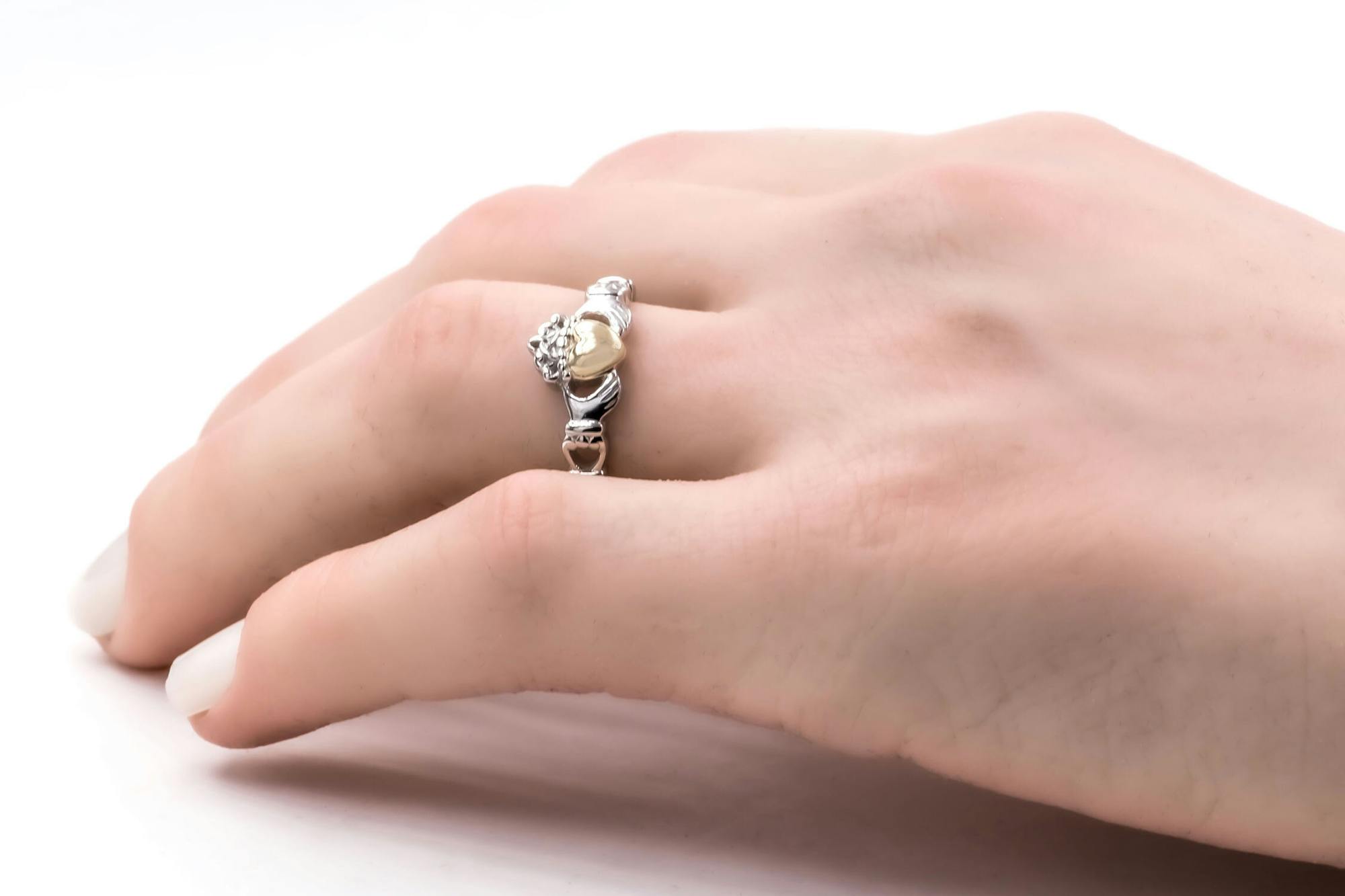 This Sterling Silver Claddagh Ring With 10k Gold Heart is suitable for the following rings.