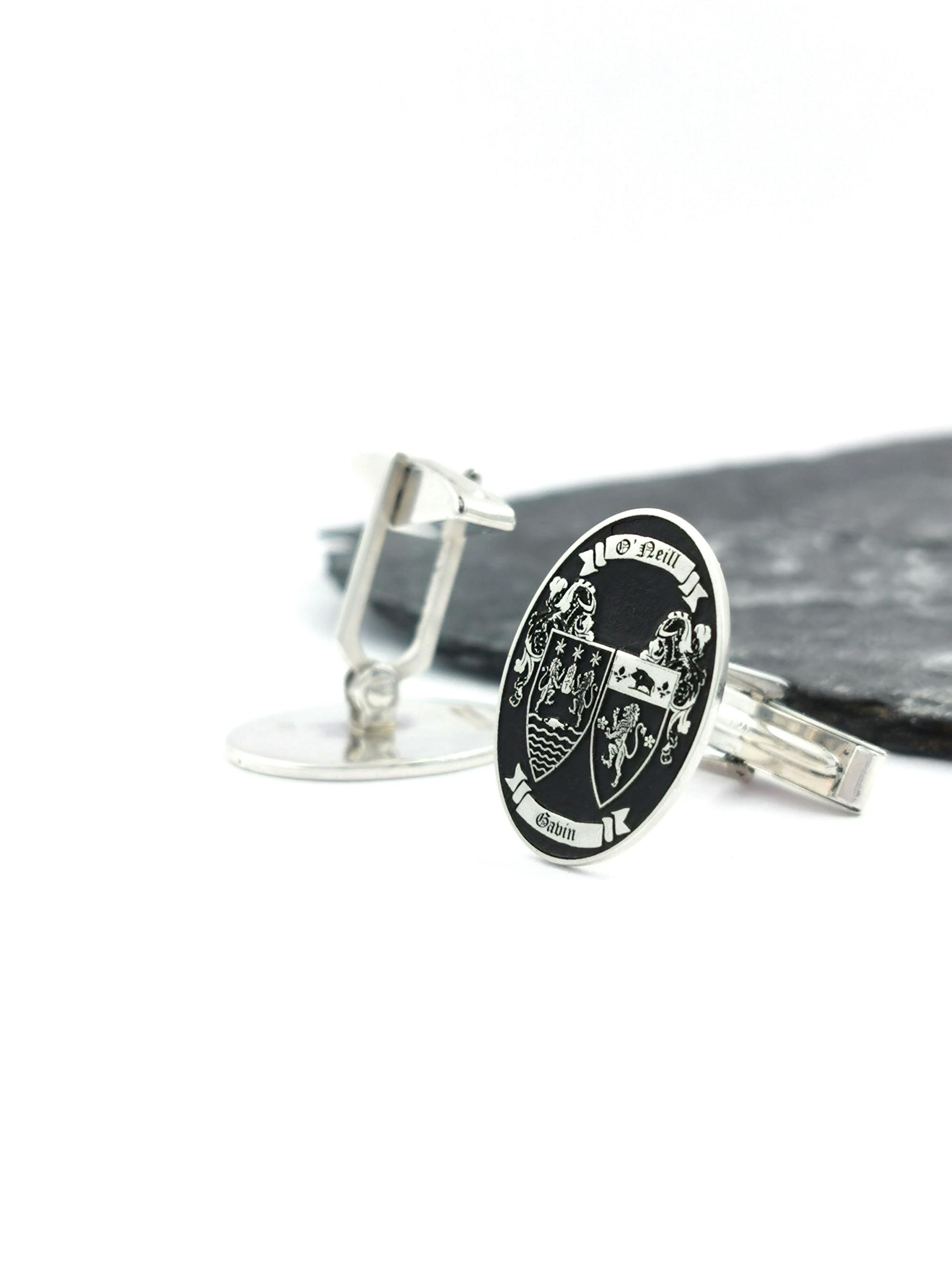 Celebrate the joining of two families with these fabulous coat of arms cufflinks. These custom made cufflinks would make a magical gift for your spouse to bring two souls together. An heirloom piece to be handed down to the next generation.