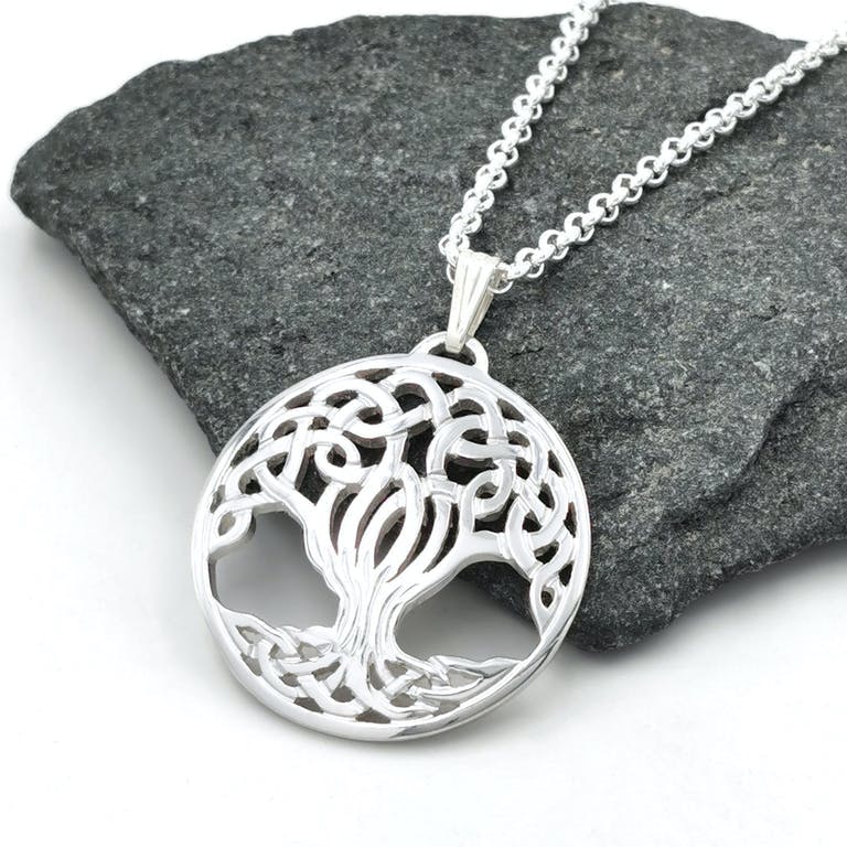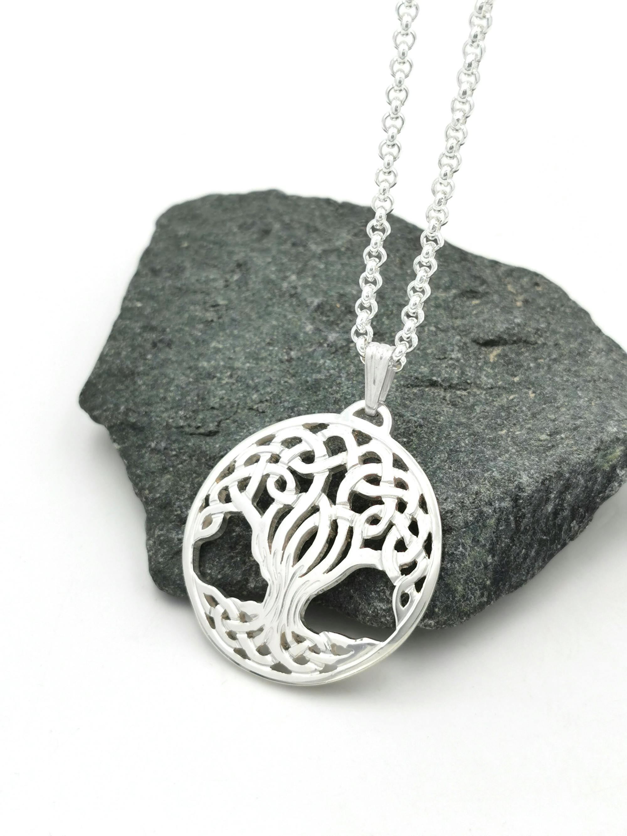 This handmade tree of life necklace is really something special. Solid, strong and robust, the tree is designed with graceful spreading branches that capture a soft flowing motion. The overall impression is one of elegance with hidden strength and depth. The pattern has been painstakingly cut out with exacting precision by master silversmith Aidan Breen, for a necklace with splendid detail.