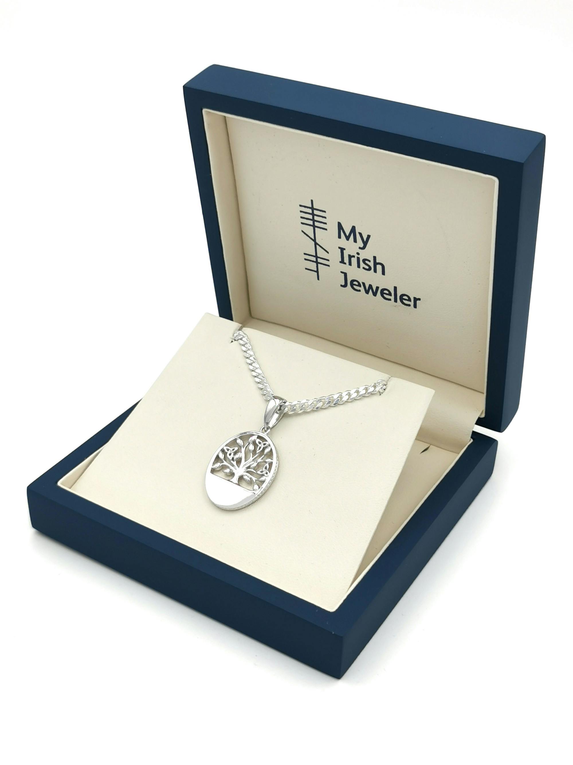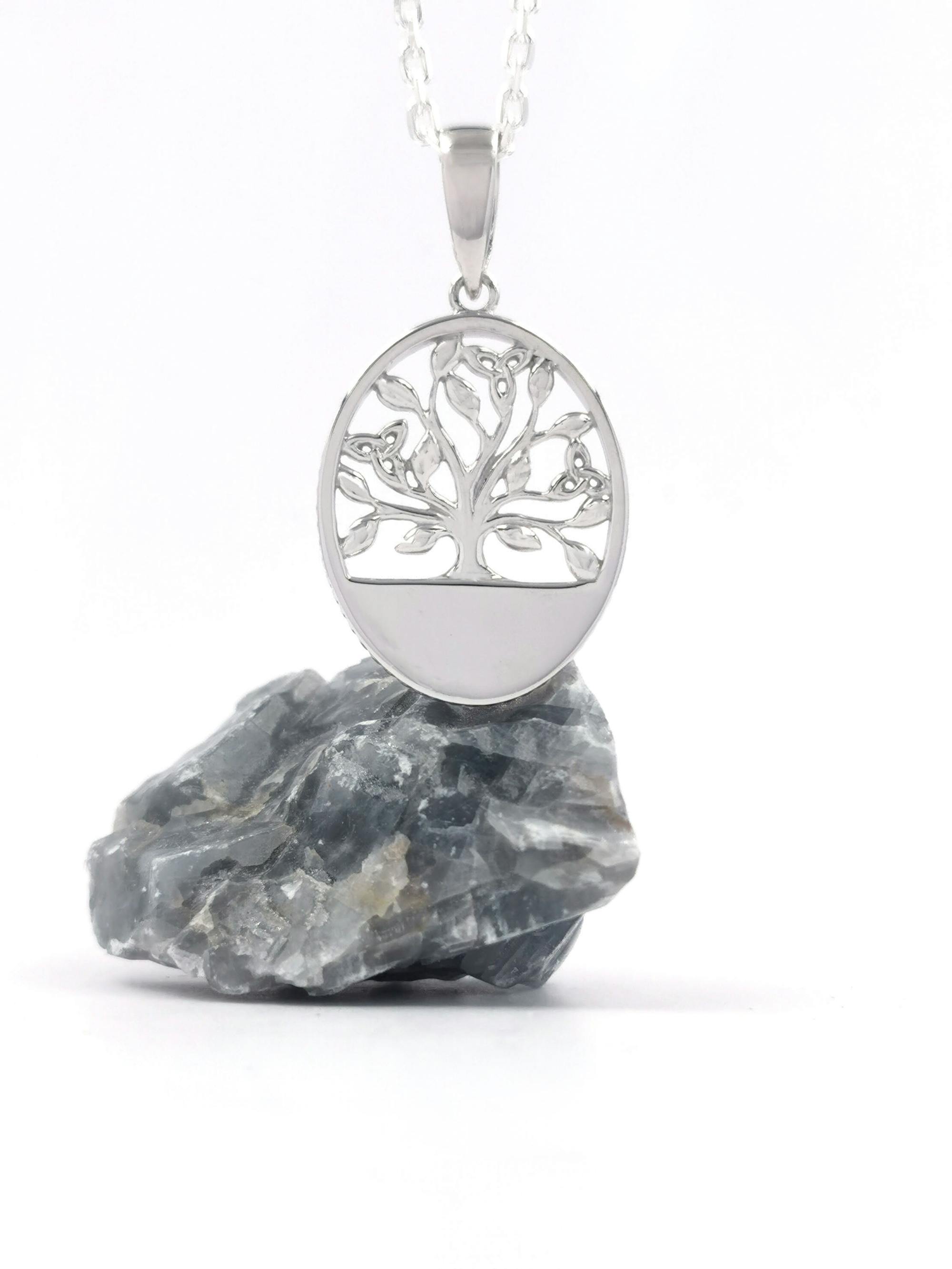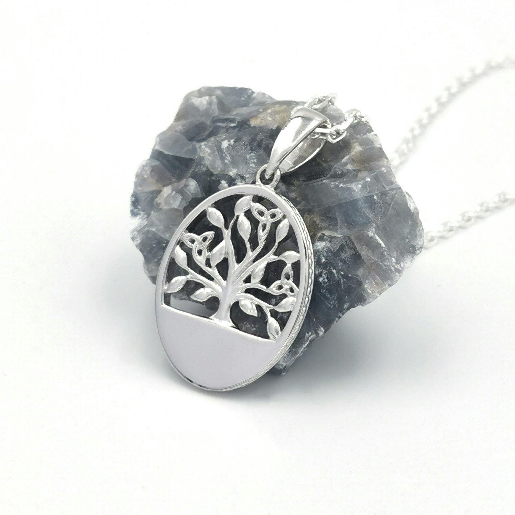 Trees were revered by our celtic ancestors and for many today, the celtic tree of life represents growth, strength, and connection. The soft oval shape beautifully frames the wonderfully detailed tree. Subtle trinity knots adorn the branches to signifying eternity, continuity and love.