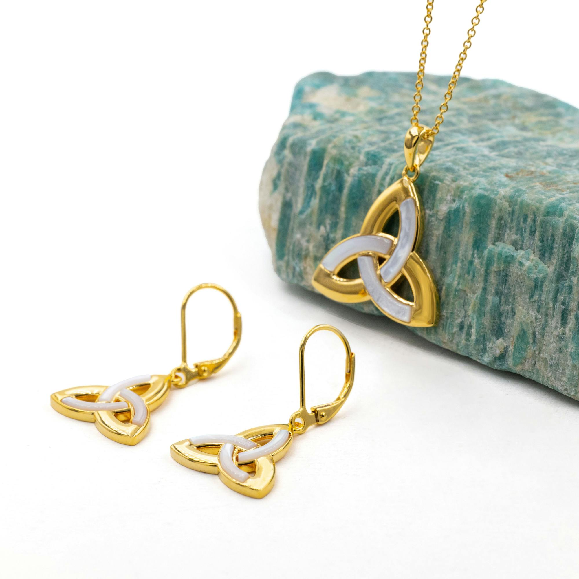 Trinity Knot Vermeil Mother of Pearl Necklace and Drop Earring Gift Set