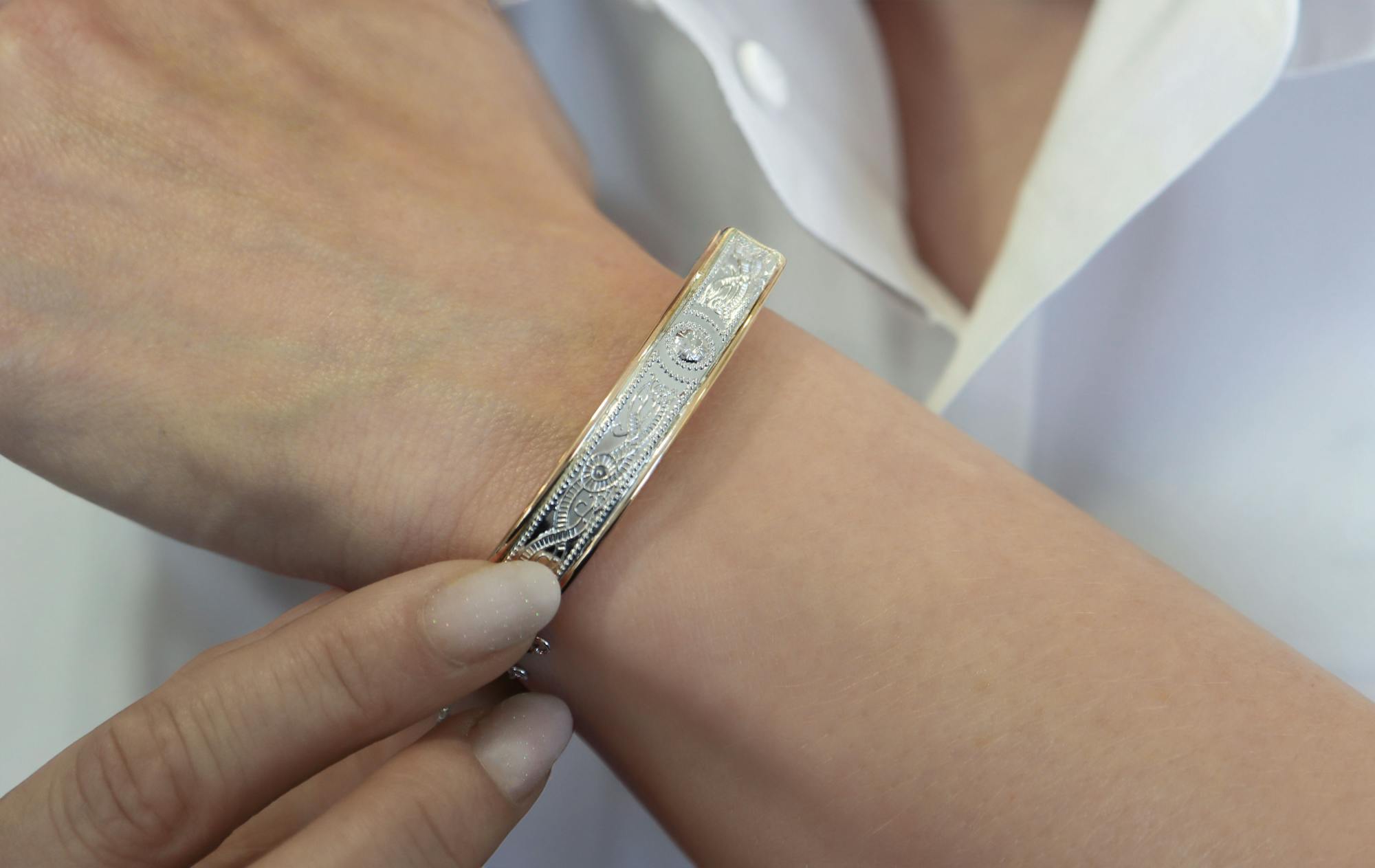 I love this bangle. It is so distinctive. The design is absolutely lovely. I highly recommend this item, for yourself or someone else special in your life. You deserve something beautiful.