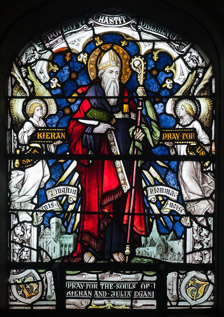 A stained glass window at St.Brendan's Church in Co. Offaly depicting St. Ciarán - also known as St. Kieran (among other names!).