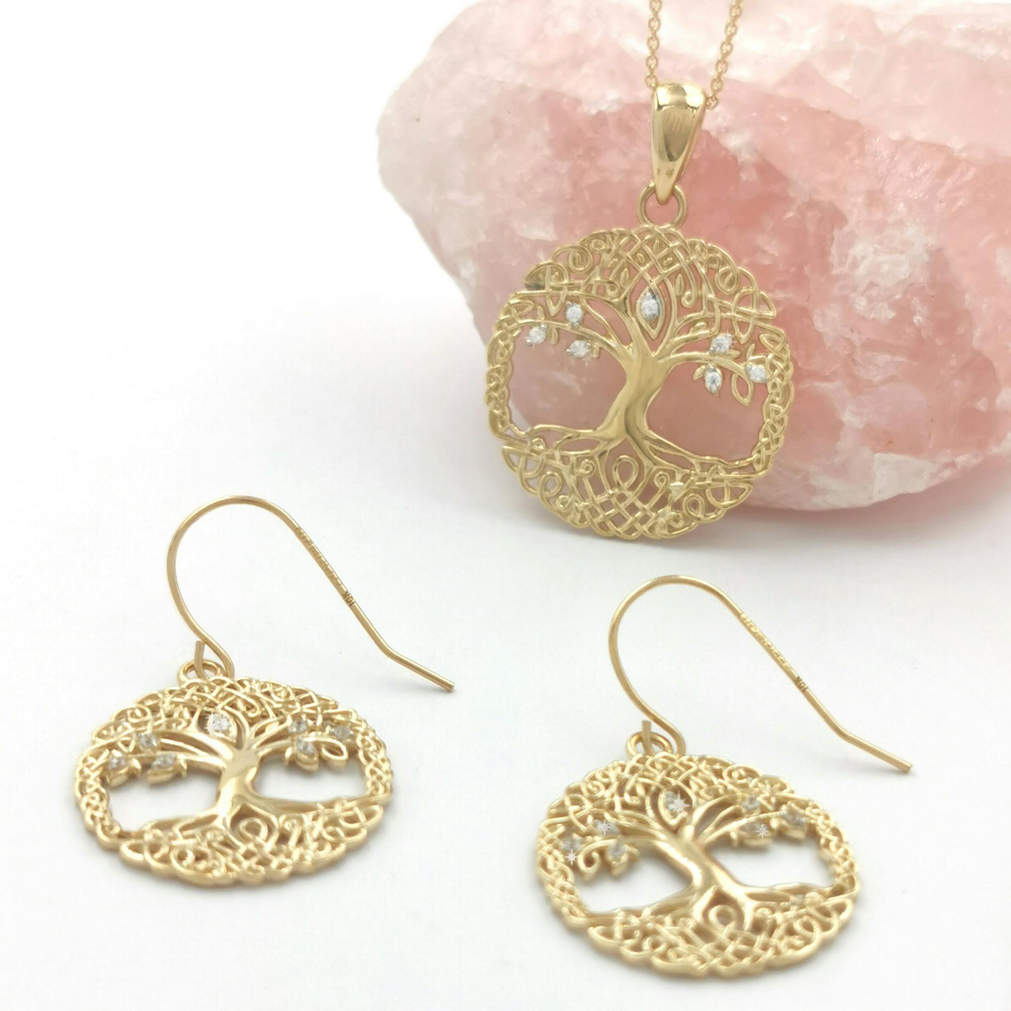 10k Gold Celtic Tree of Life Necklace and Drop Earring Set