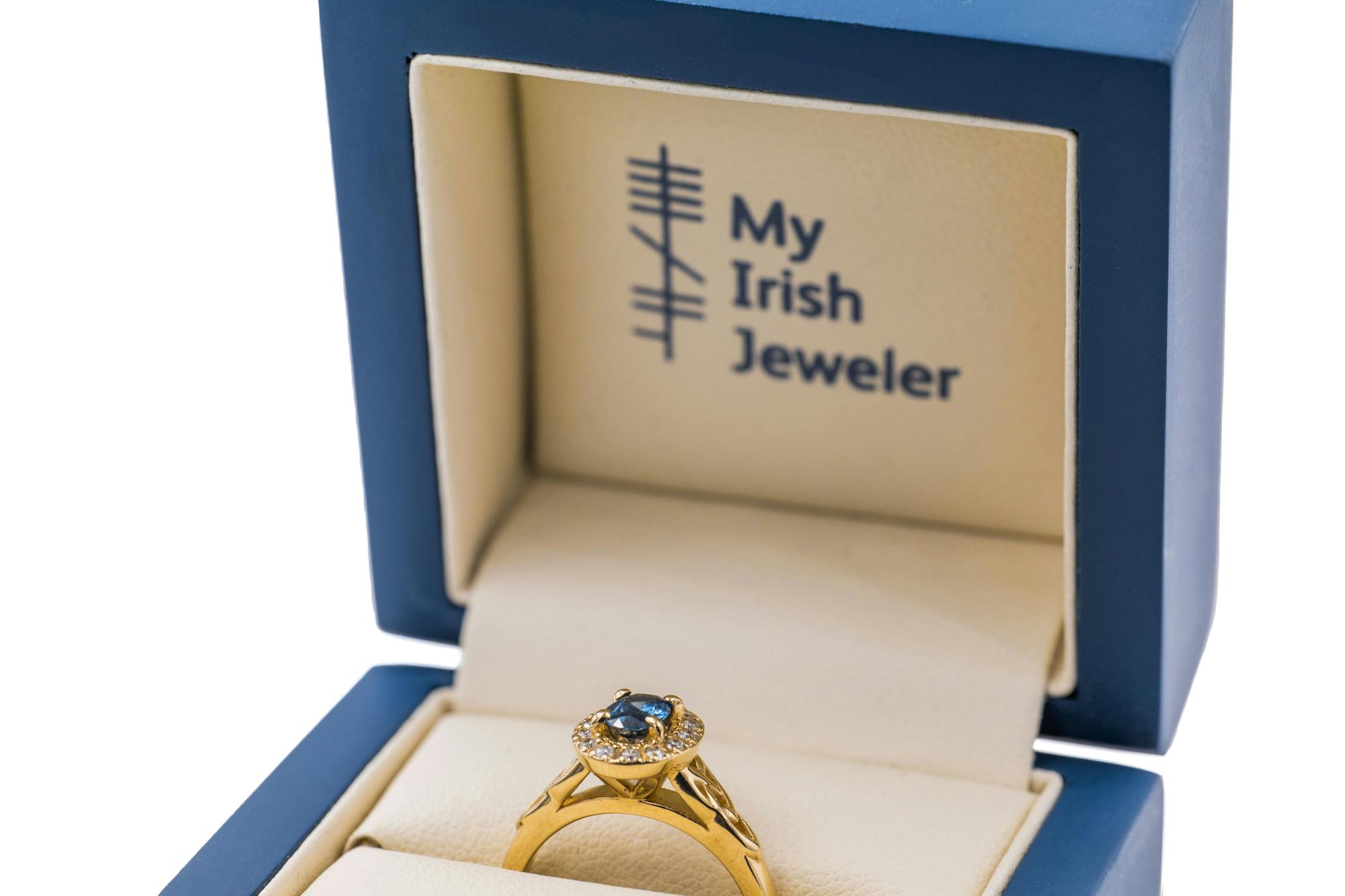 My now wife surprised me early last year on Valentine's Day with the silver Ardagh Chalice Ring. I loved it so much I told her it could be my wedding band if we got married. 3 months later, I special ordered this white gold diamond halo ring and proposed to her. I noticed that shortly after I received the ring it appeared on the front page of the website; and with close inspection, I could tell it was the actual ring I had special ordered!! Almost one year to the date of receiving my ring from her, we were married. We both love and cherish these rings. Thank you so much, My Irish Jeweler!!