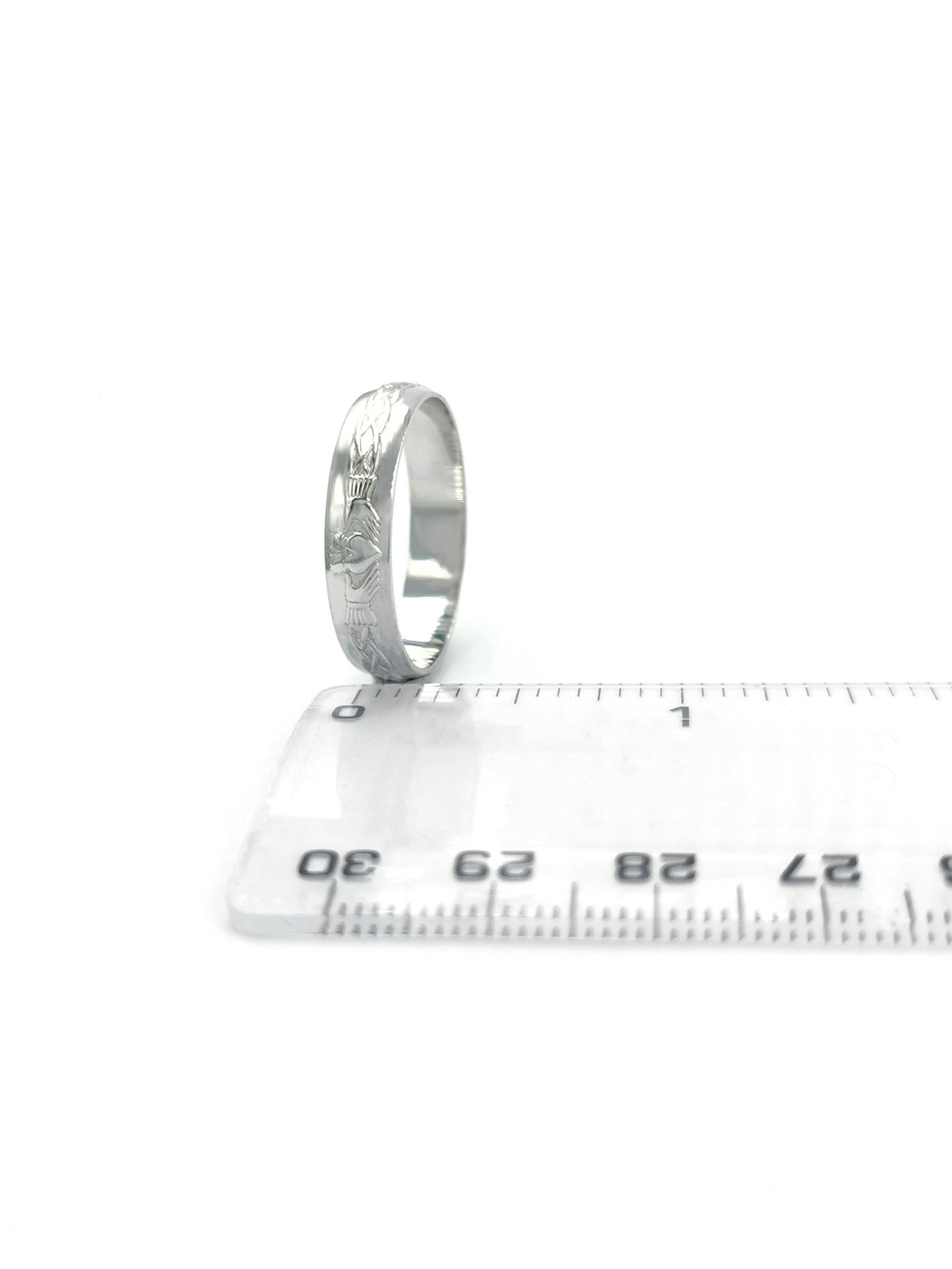 The heart crown and hands of the Claddagh represent, love, loyalty, and friendship, a beautiful symbol cherished in Ireland and exchanged between sweethearts for over 400 years. The Celtic knot band enhances this meaning, representing strength and eternity. A meaningful choice for those looking to mark milestones.
