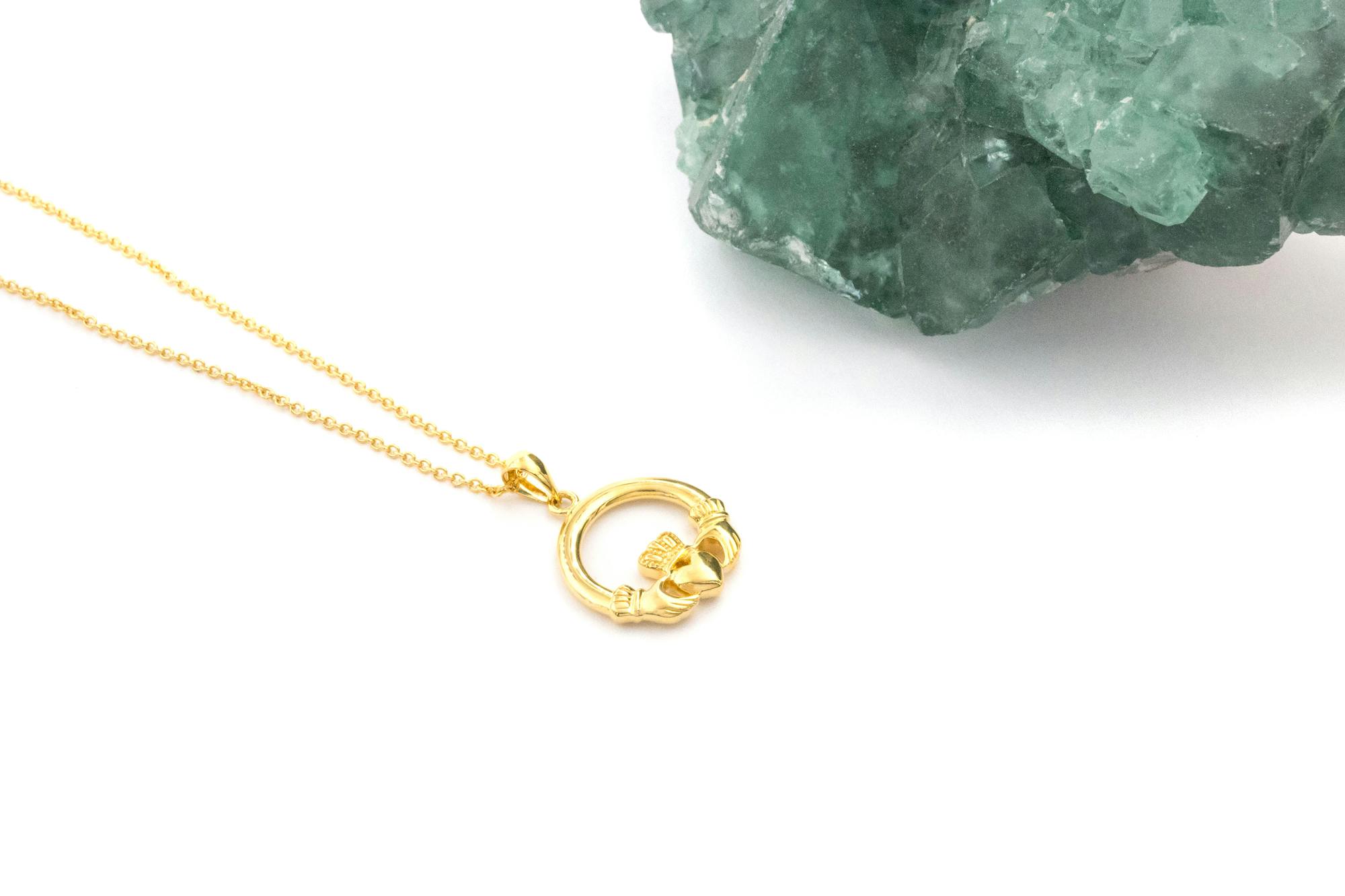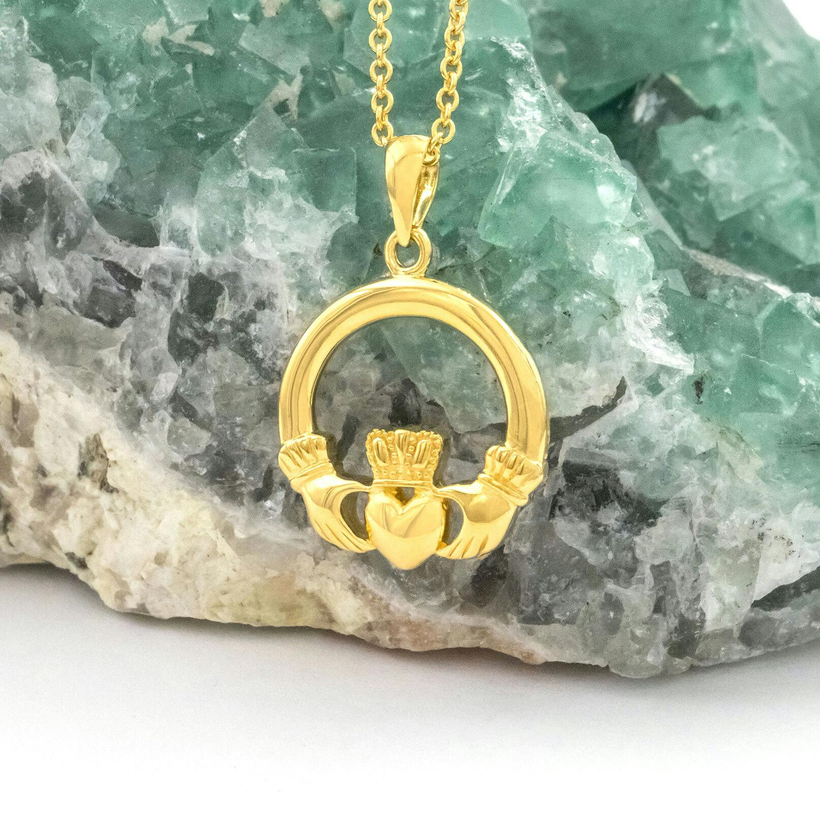 Crafted in solid sterling silver with a thick, 3µm layer of 14K gold vermeil, this necklace has been hallmarked at Dublin castle assuring quality.