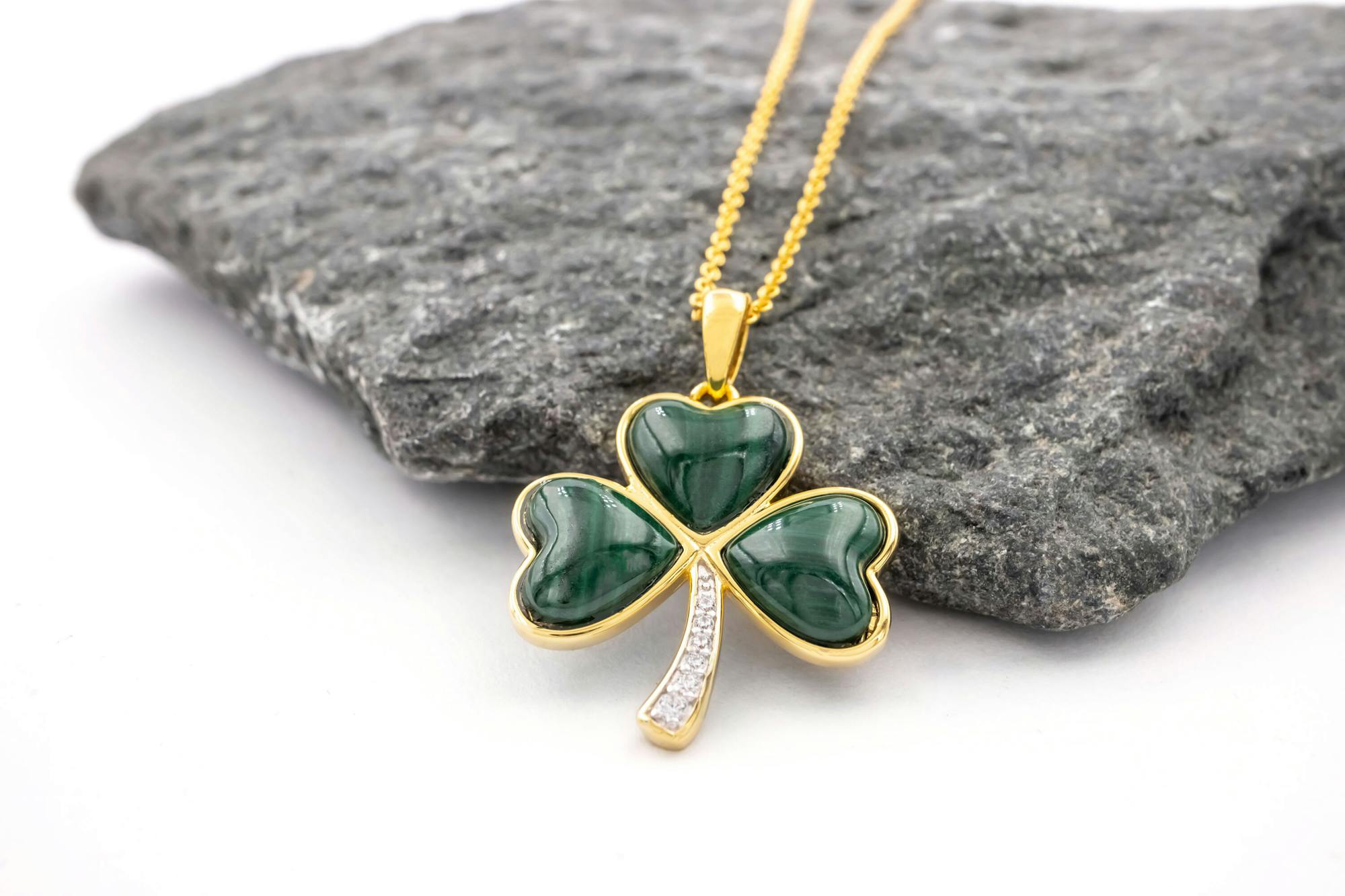 The shamrock has now grown to eclipse the celts and the saint as a global symbol of Ireland, growth and good fortune. And this lucky symbolism pairs beautifully with malachite's association with growth, and protection.