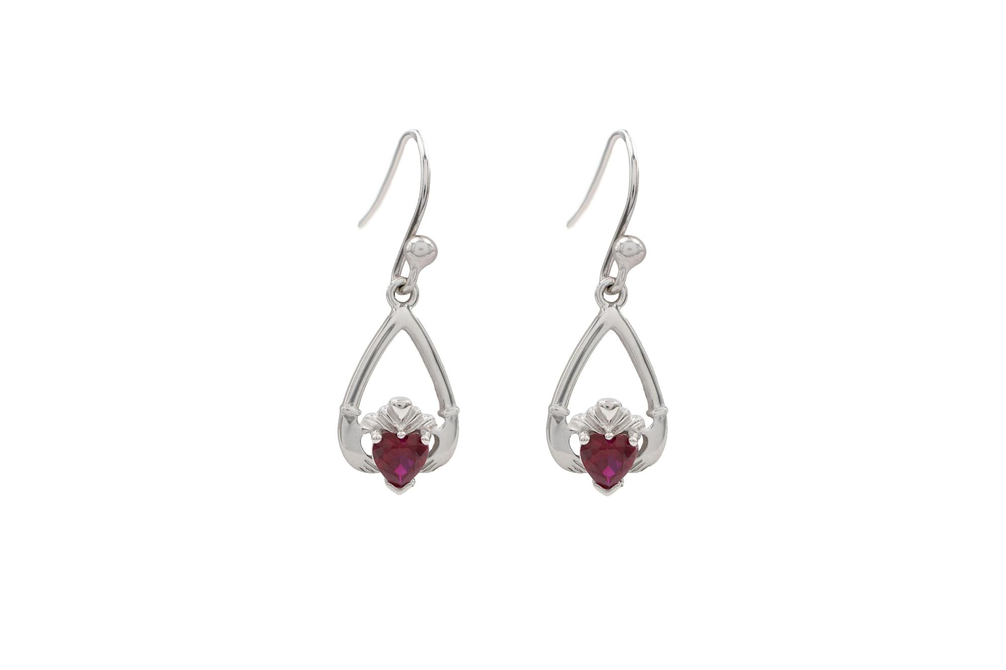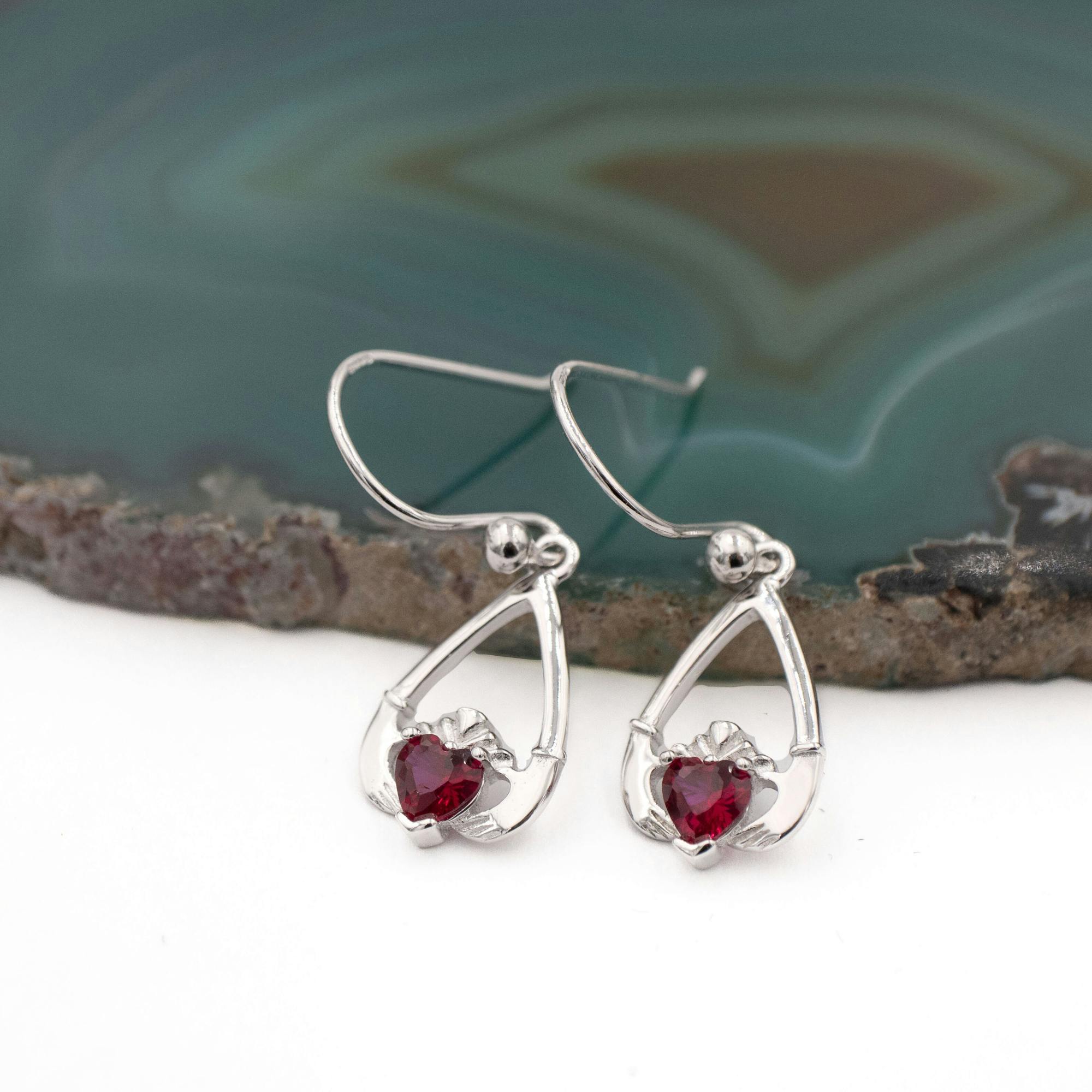 Stunning Sterling Silver Claddagh drop earrings set with the birthstone of your choice.