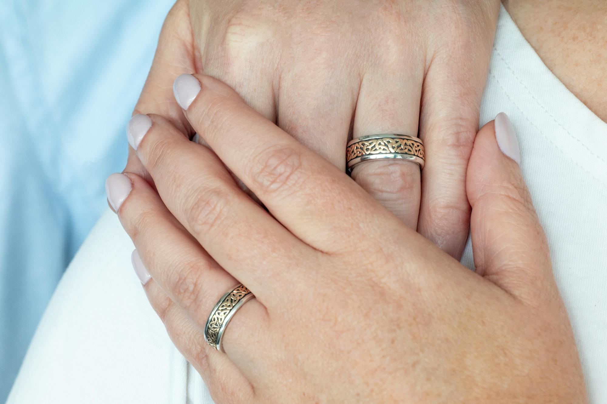 My husband and I are thrilled with our Sterling Silver Trinity Knot rings. Claire was very helpful during the video consultation in advising us on the correct sizes and helping us with our selection--so many beautiful rings to choose from! The rings are our gifts to ourselves for our 25th Wedding Anniversary for which the traditional gift is silver. I was a bit nervous about having jewelry shipped from Ireland to the U.S. but all went smoothly...and quickly!